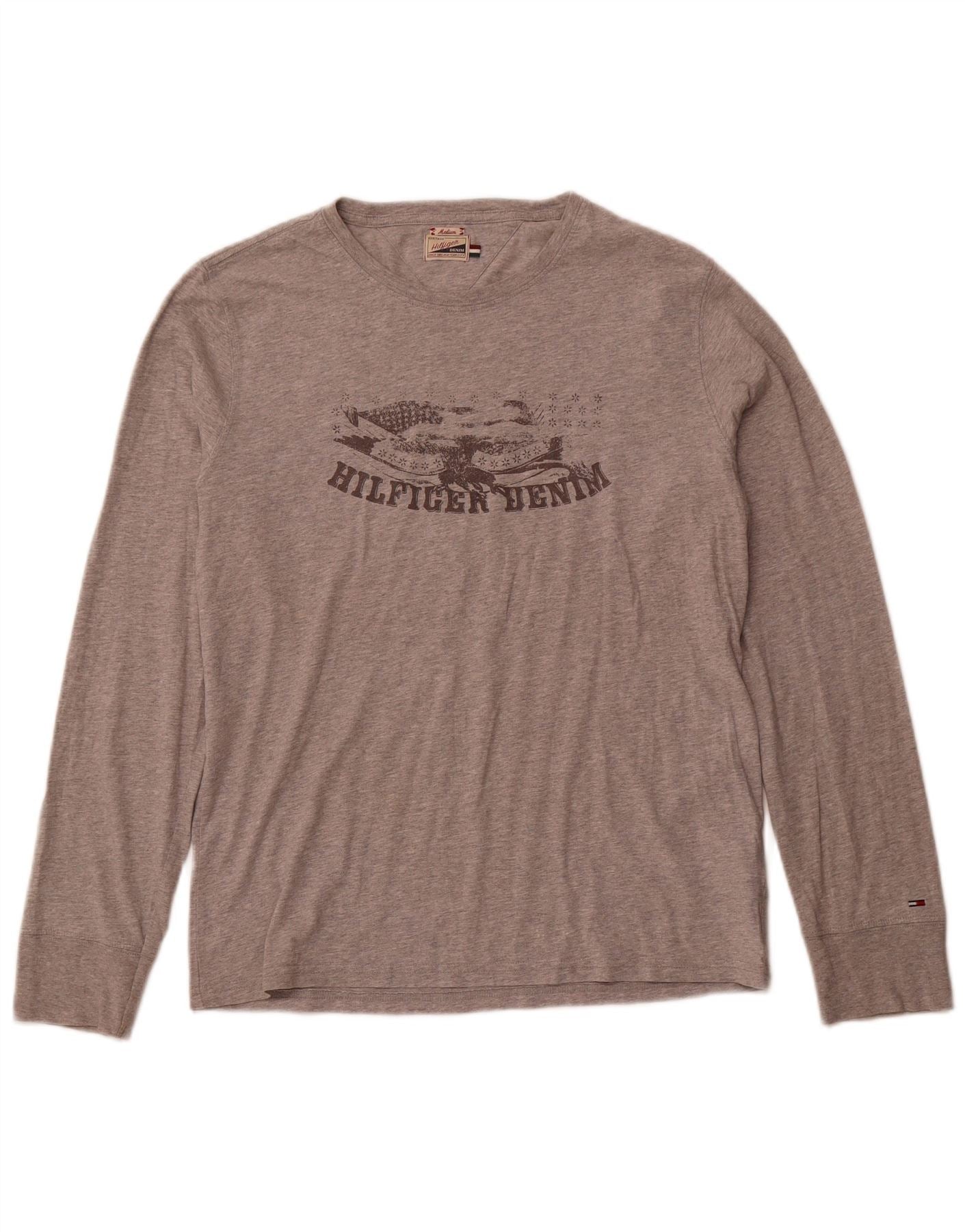 TOMMY HILFIGER Hombre Heritage Graphic Top Manga Larga Algodón Gris Medio