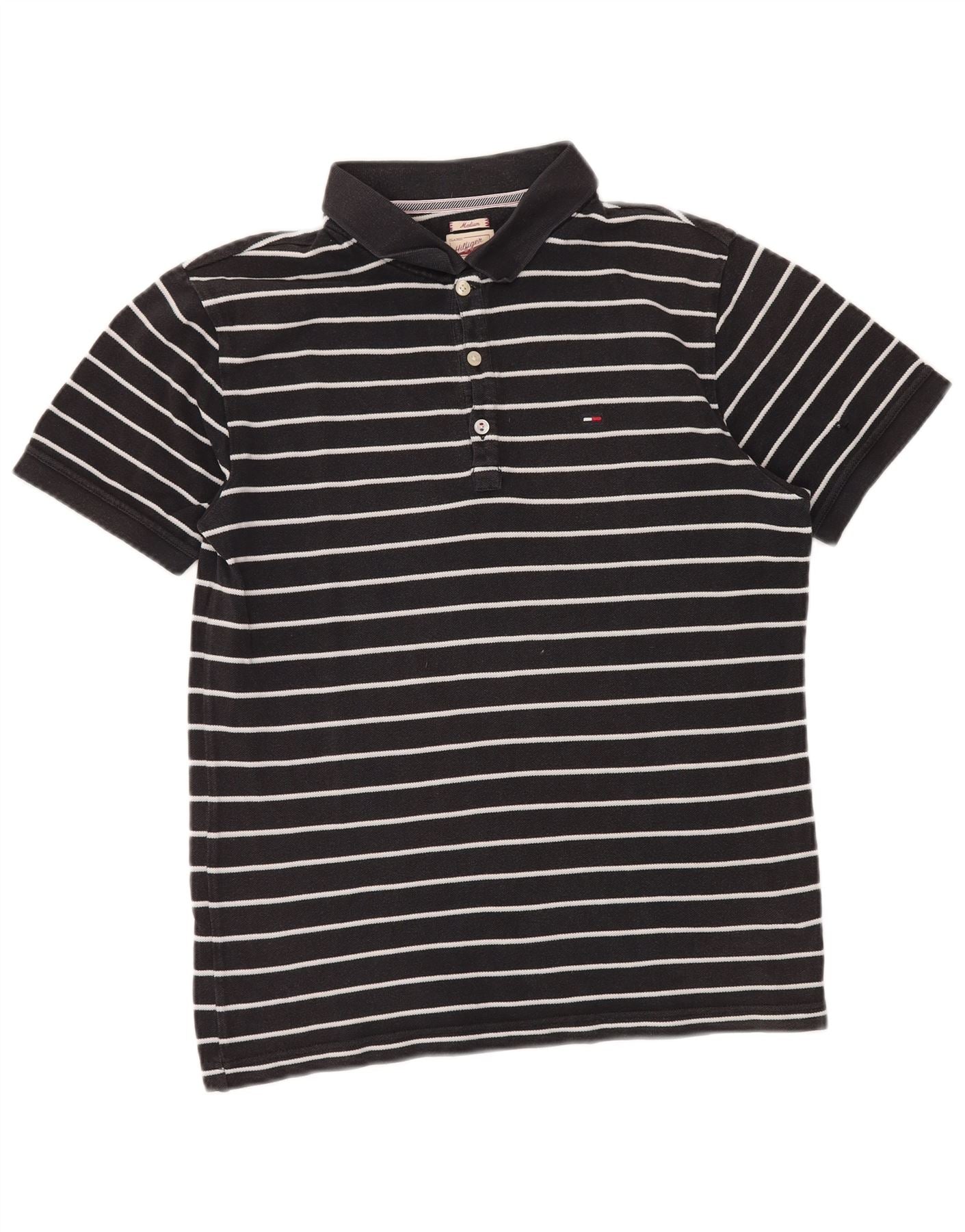 TOMMY HILFIGER Polo para hombre de algodón a rayas negro mediano