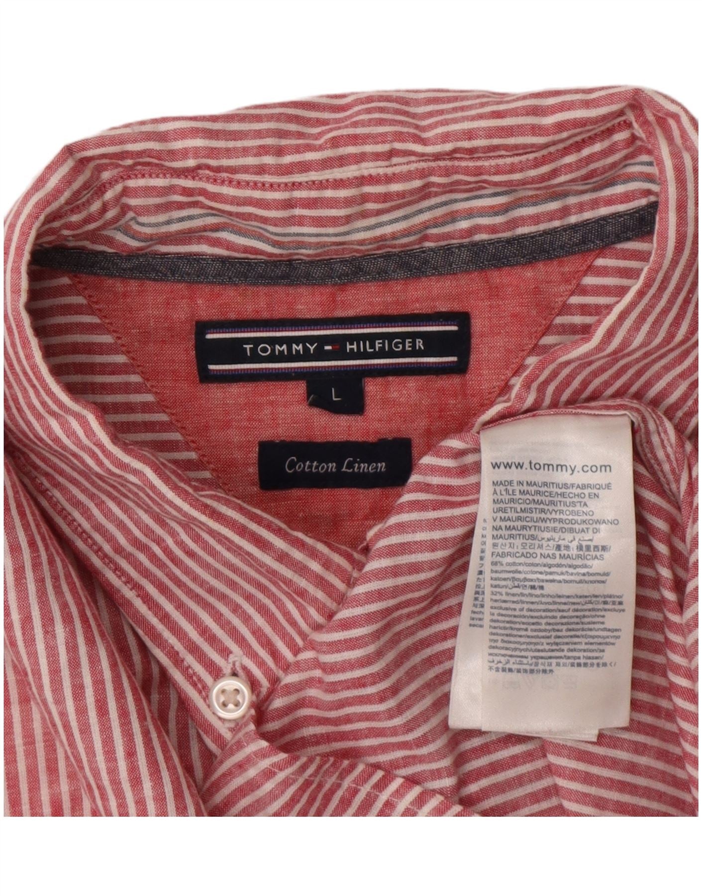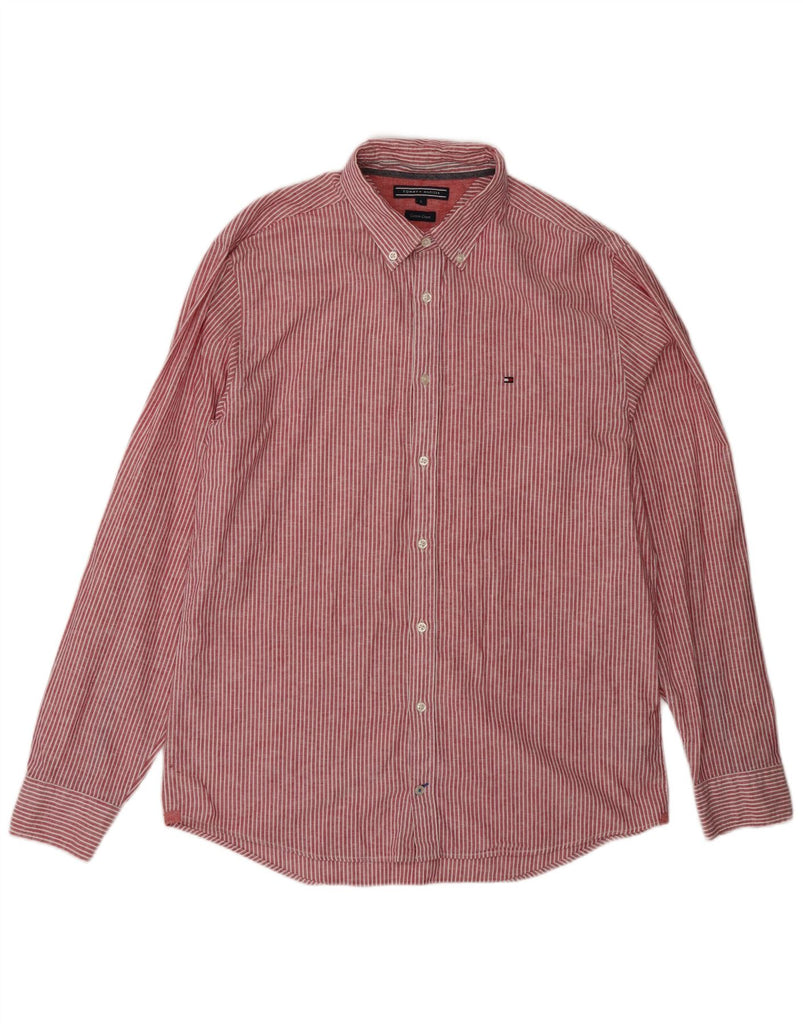TOMMY HILFIGER Camisa de corte regular para hombre de algodón a rayas rojas grandes