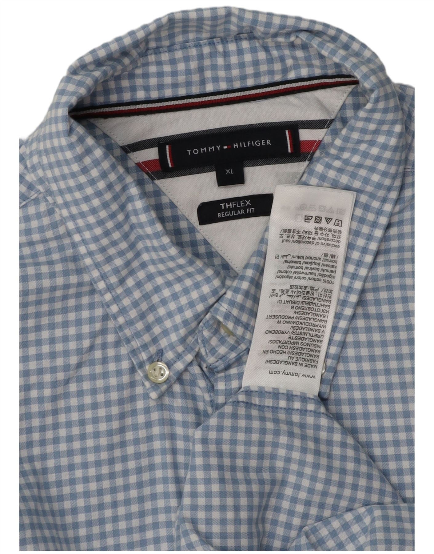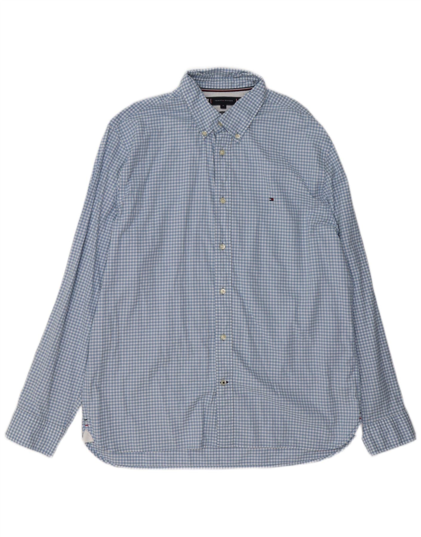 TOMMY HILFIGER Camisa Regular Fit Hombre XL Algodón A Cuadros Azul
