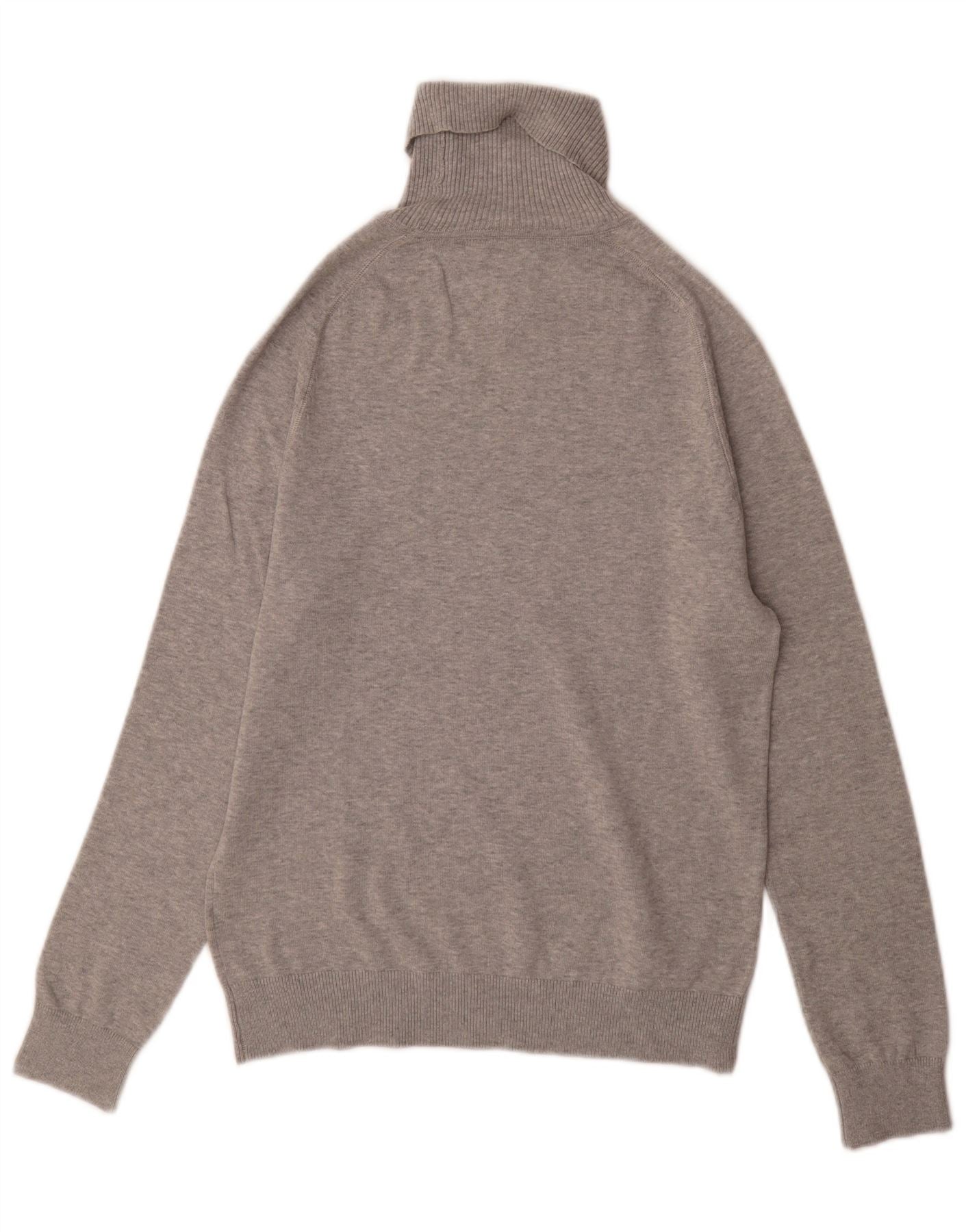 TOMMY HILFIGER Mens Roll Neck Jumper Sweater Small Grey Cotton