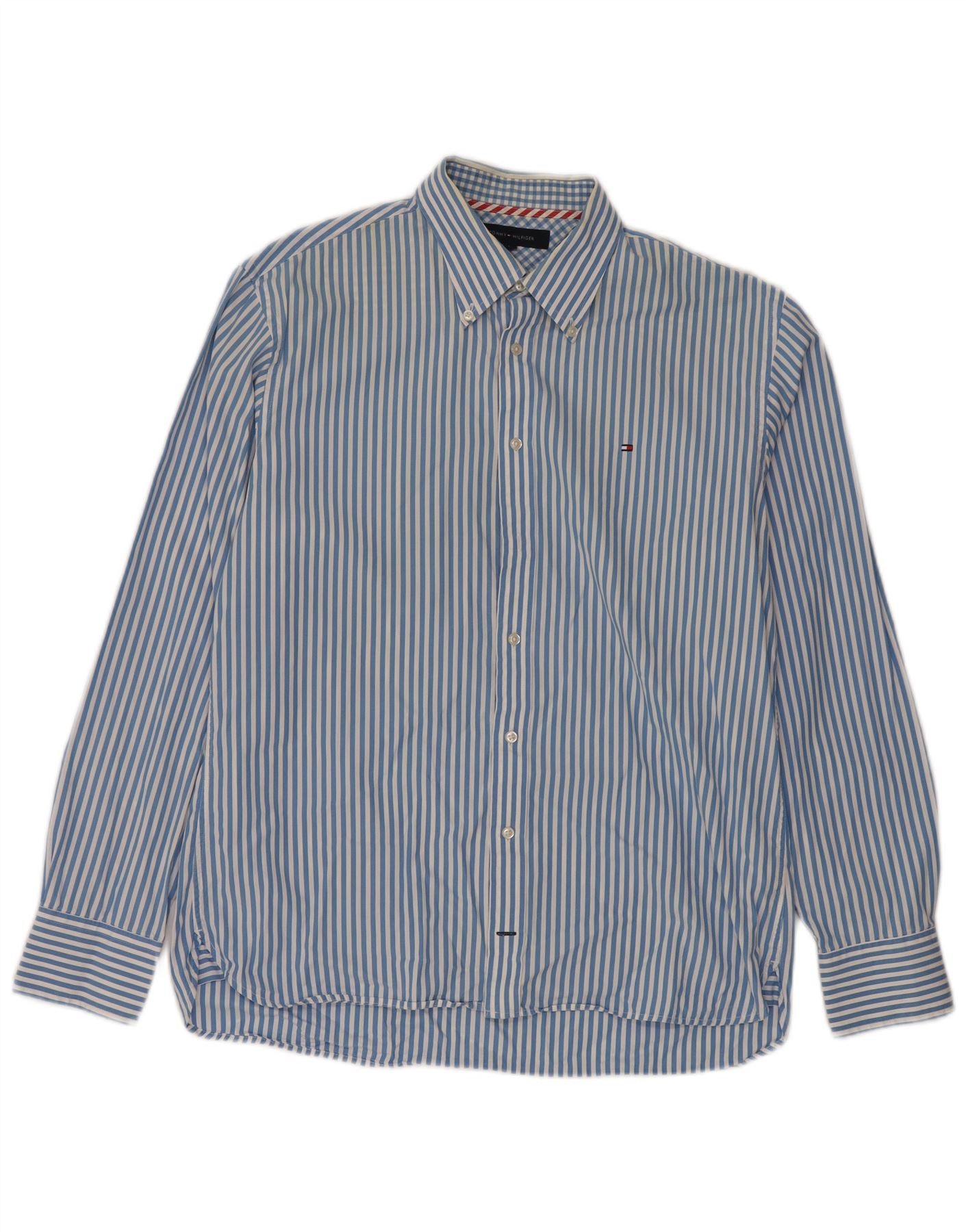 TOMMY HILFIGER Camisa de hombre grande de algodón a rayas azules