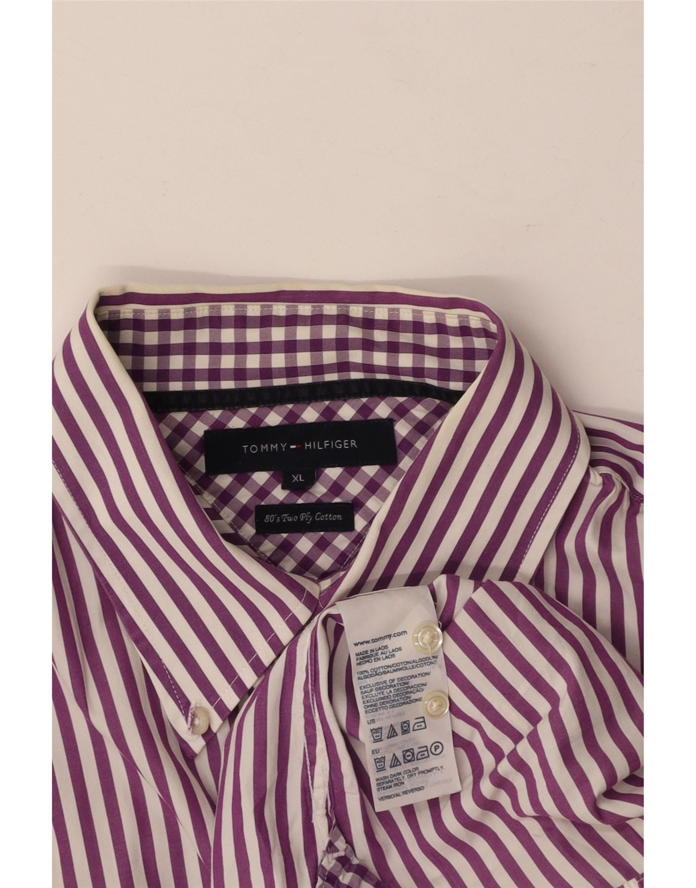 TOMMY HILFIGER Camisa para hombre XL Morado Rayas diplomáticas Algodón