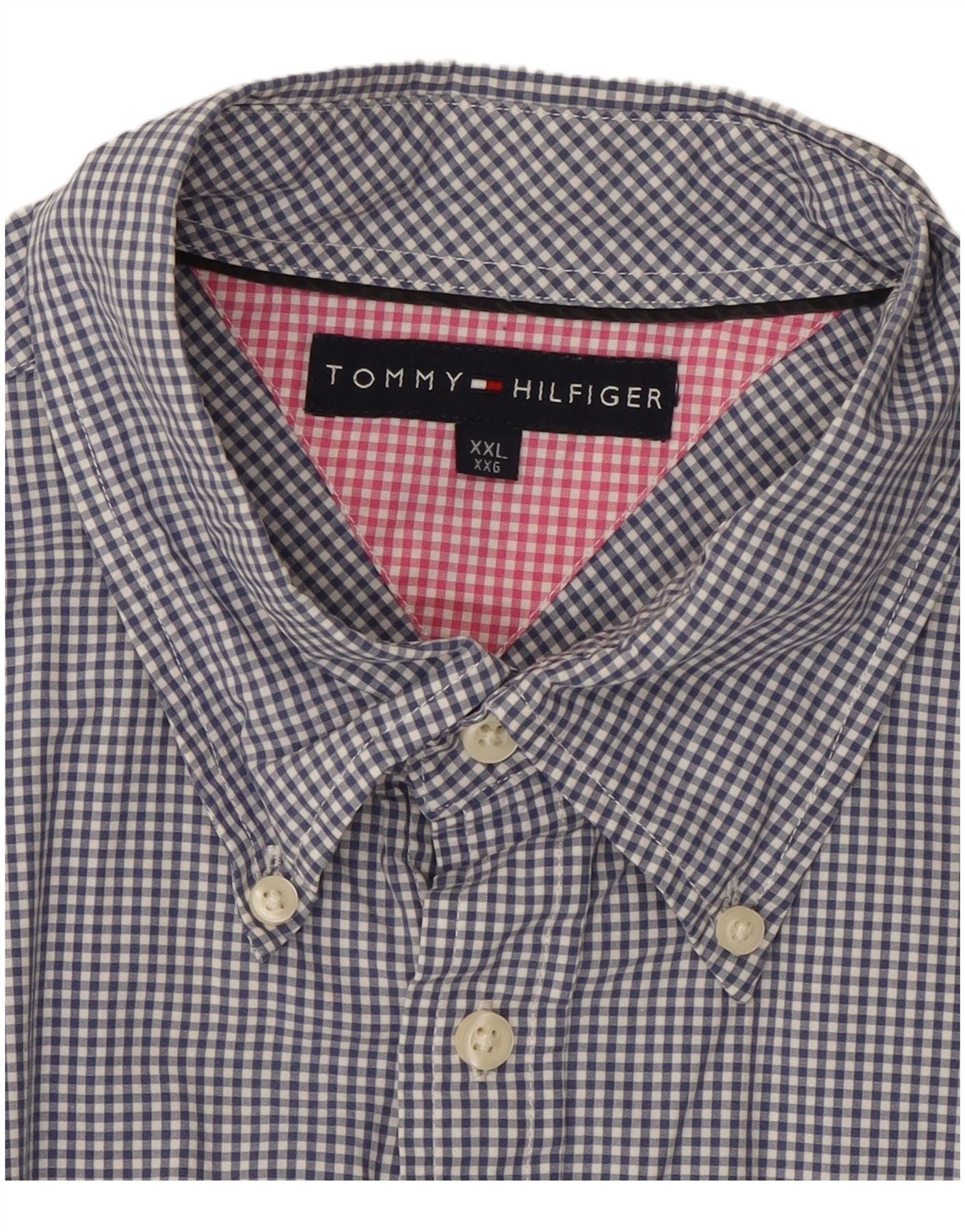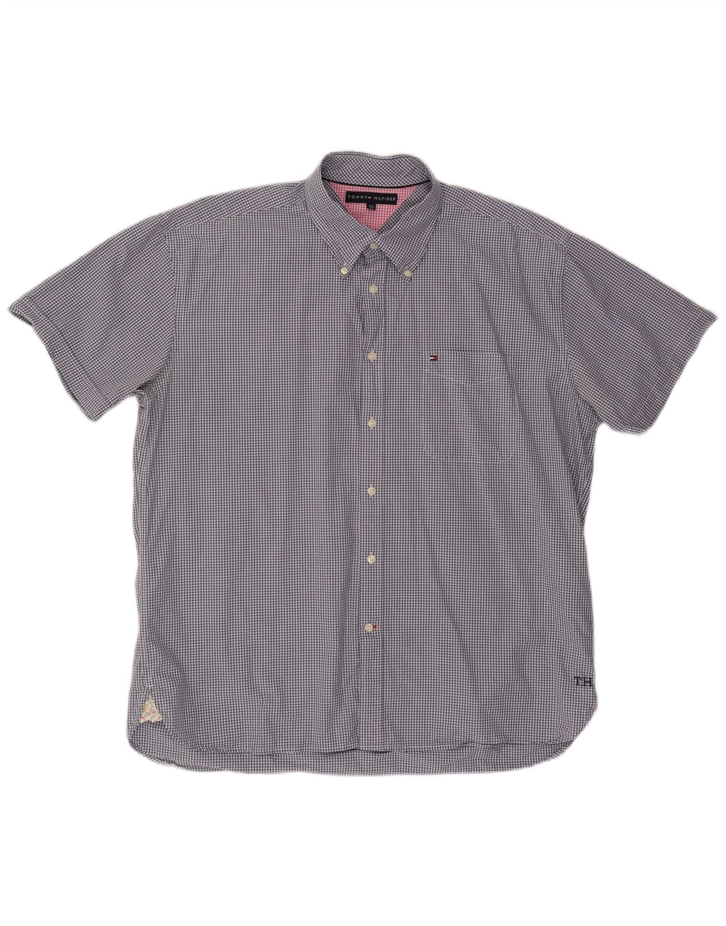 TOMMY HILFIGER Camisa de manga corta para hombre 2XL Algodón a cuadros azul