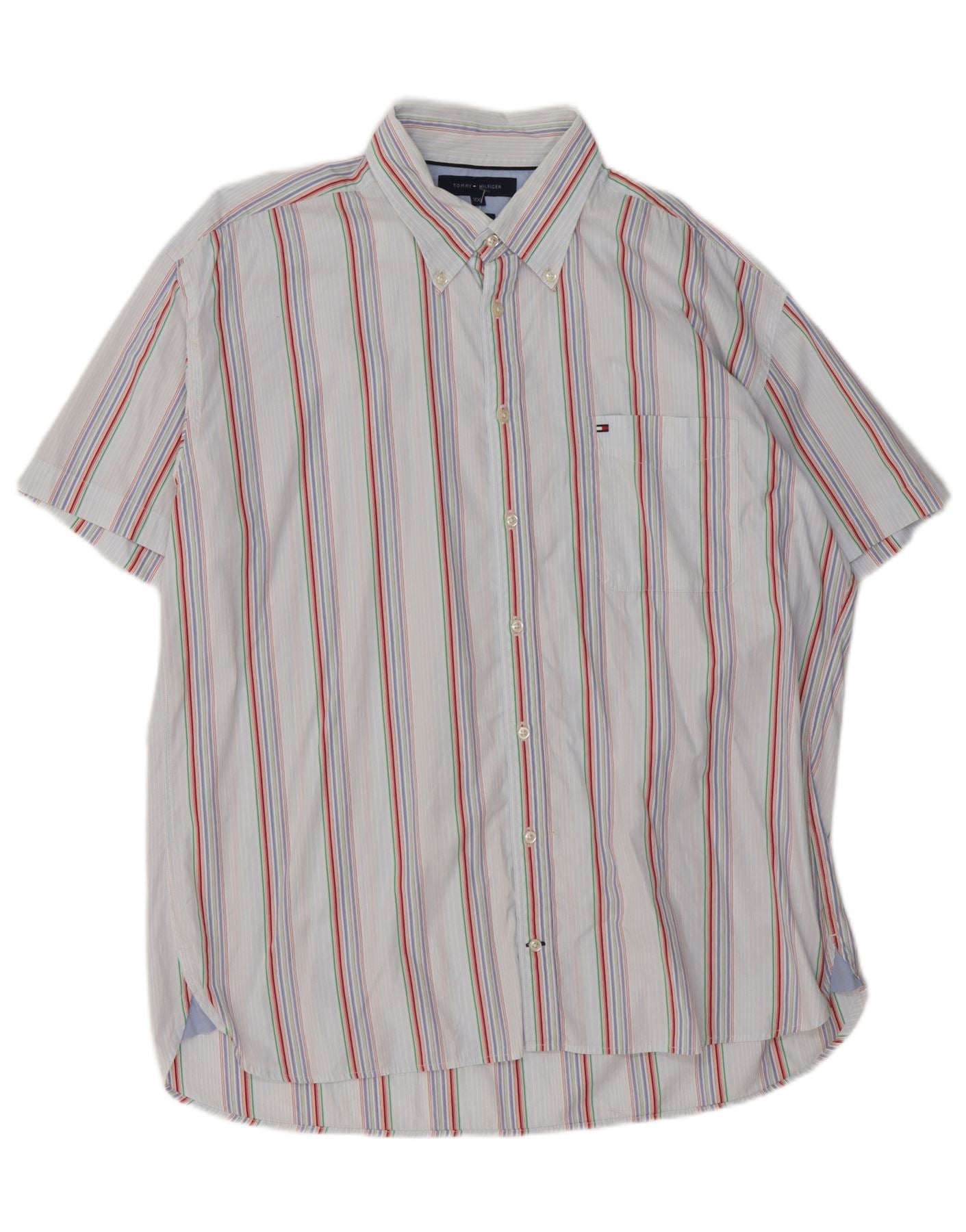 TOMMY HILFIGER Camisa de manga corta para hombre 2XL Algodón de rayas multicolor
