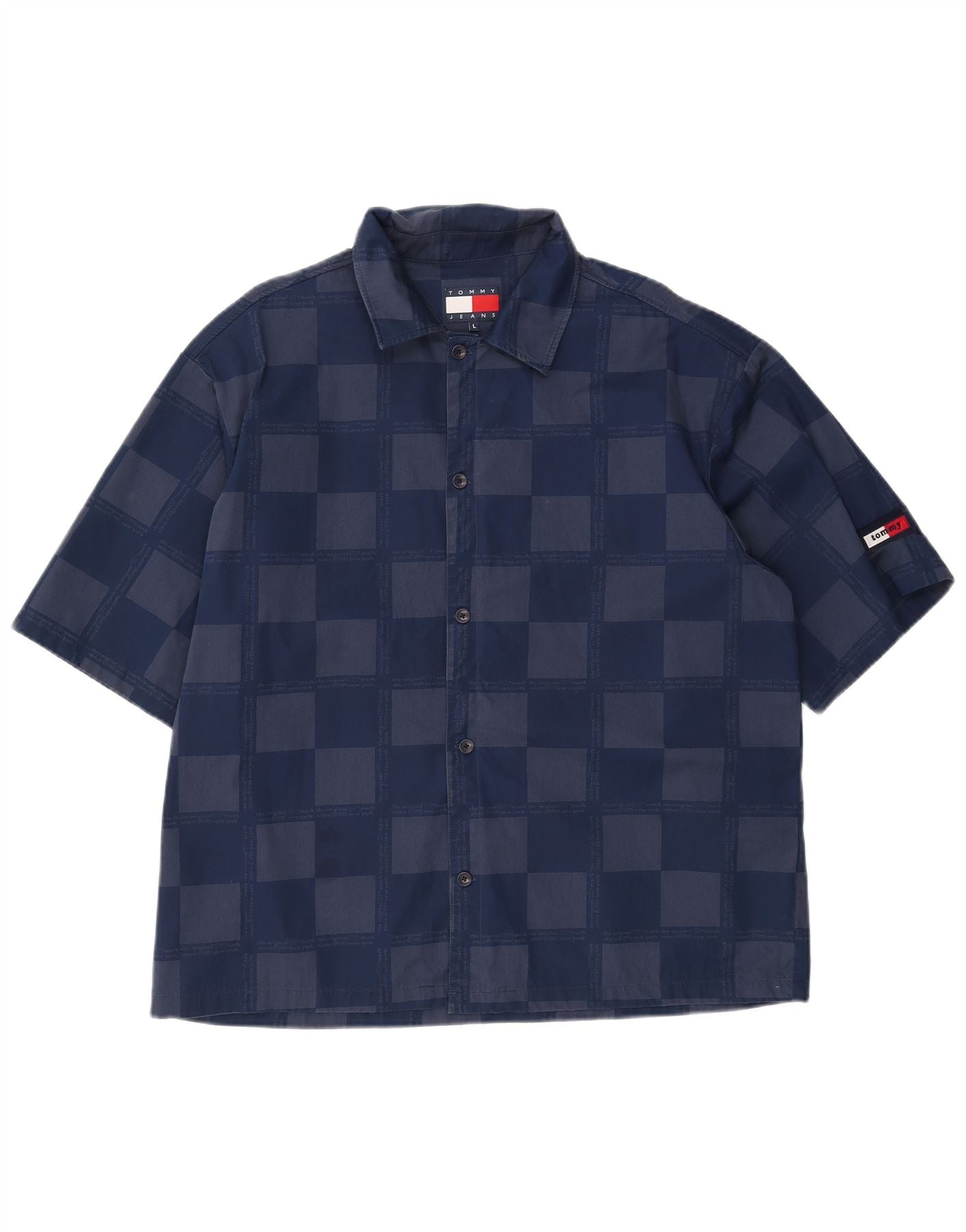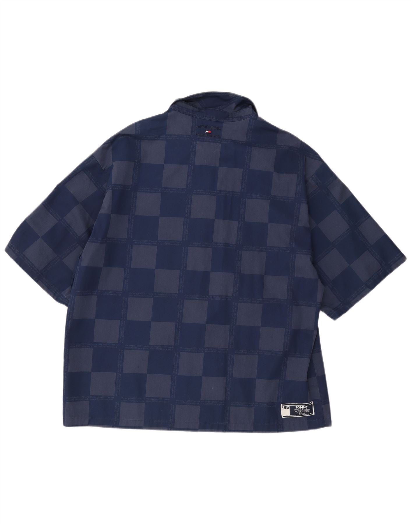 TOMMY HILFIGER Camisa de manga corta para hombre Large Viscosa geométrica azul marino