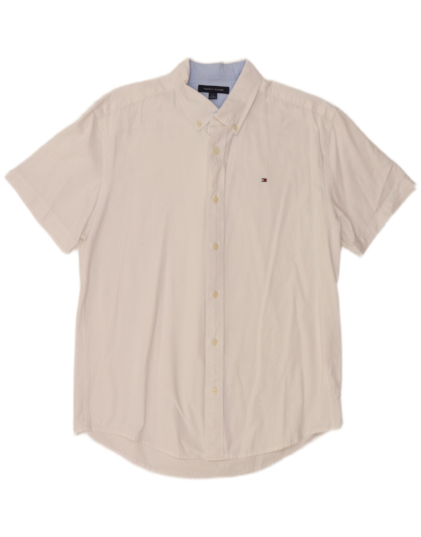 TOMMY HILFIGER Camisa de manga corta para hombre Large White Cotton