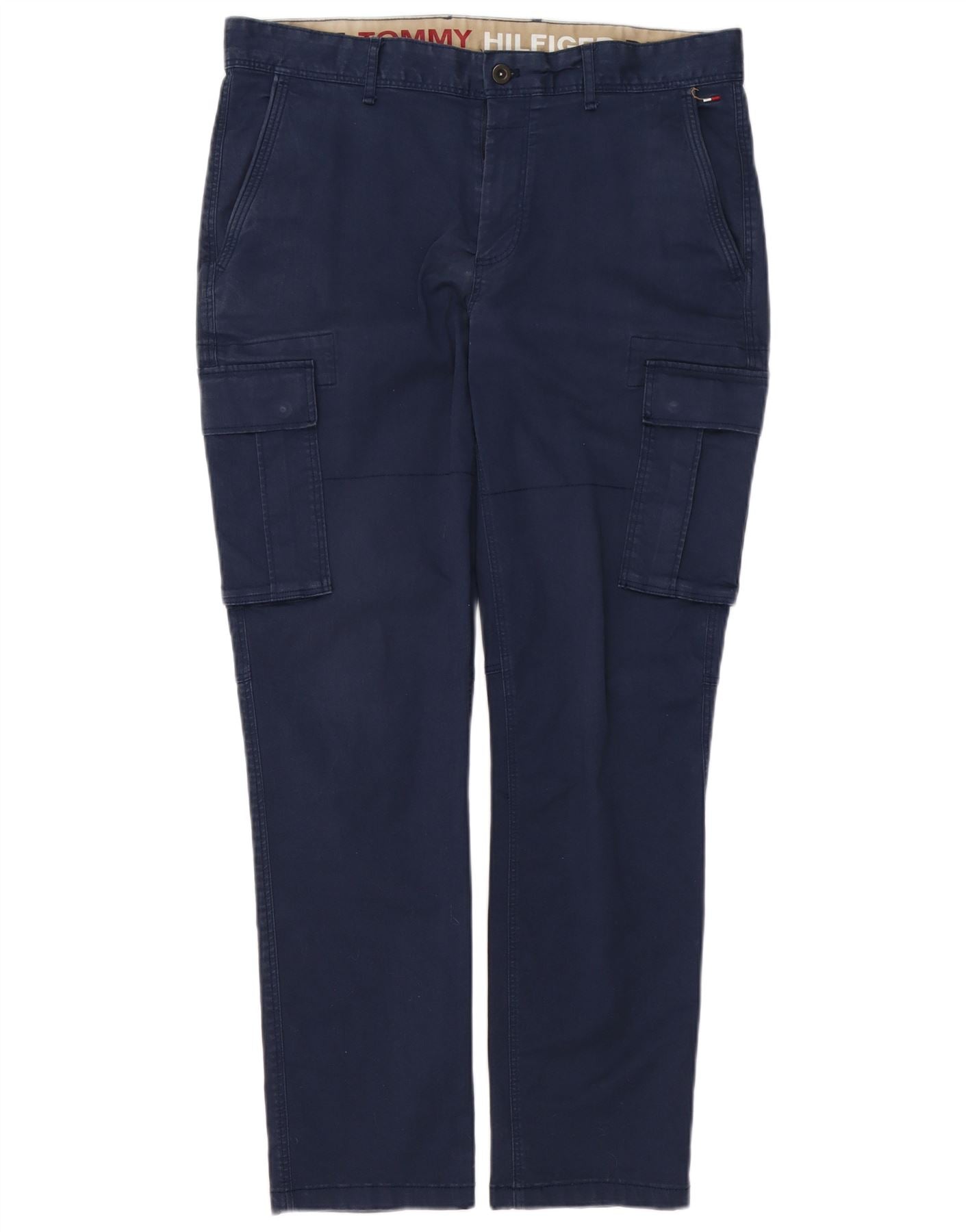 TOMMY HILFIGER Pantalones cargo ajustados para hombre W33 L32 Algodón azul marino