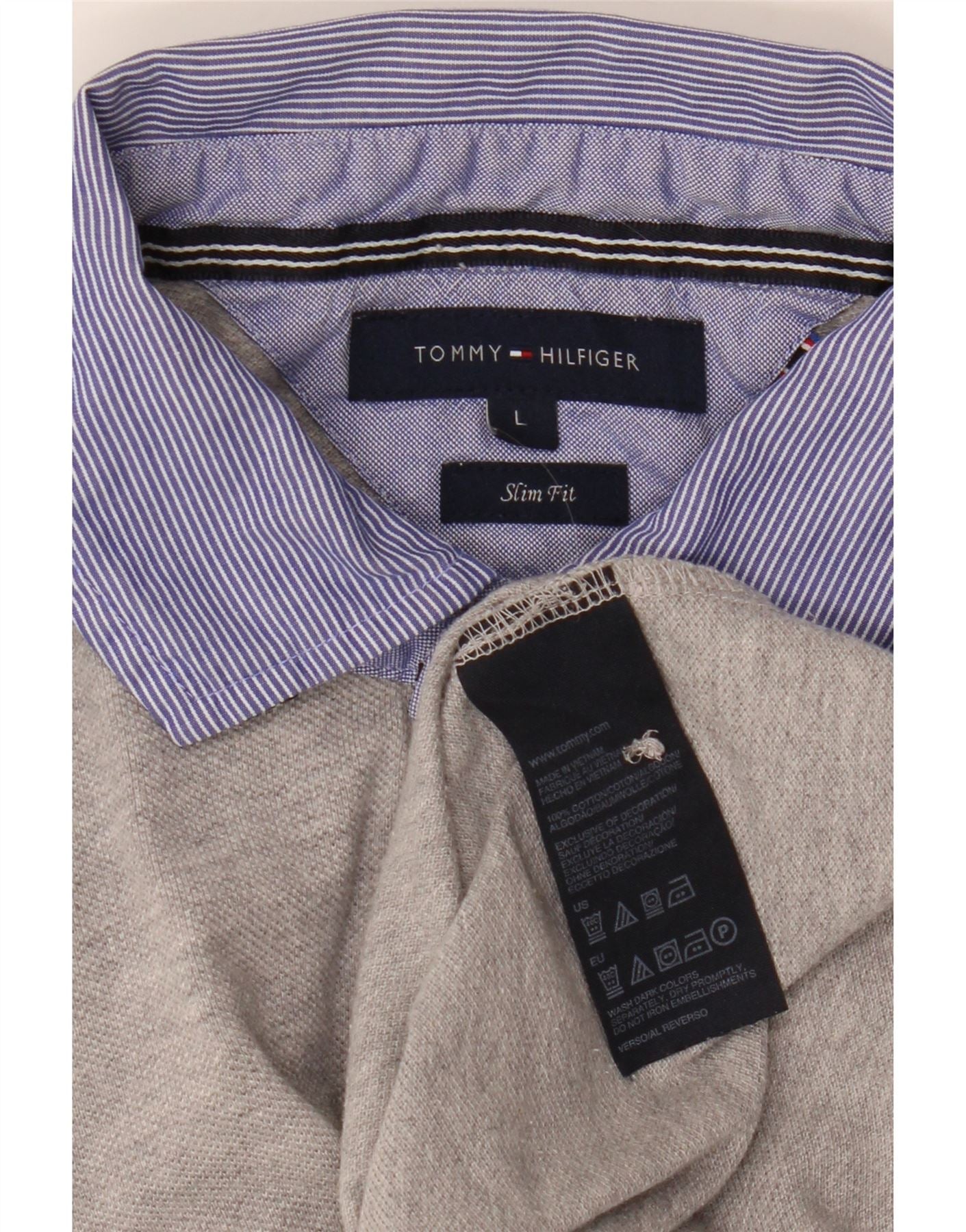 TOMMY HILFIGER Polo gráfico de corte ajustado para hombre Algodón gris grande