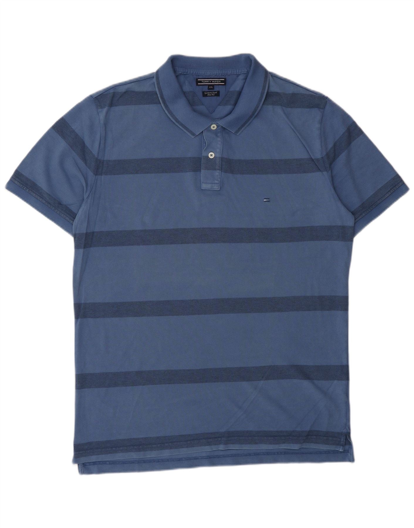 TOMMY HILFIGER Polo ajustado para hombre 2XL Algodón a rayas azules
