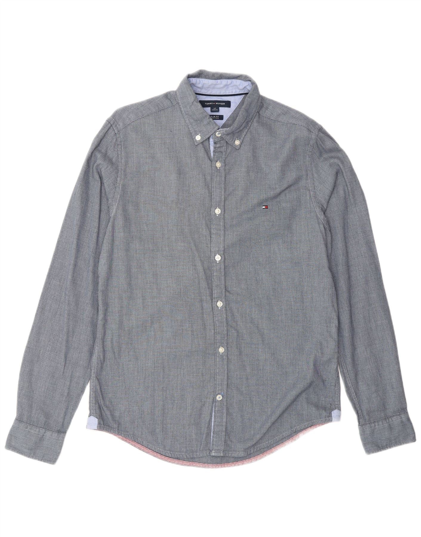 TOMMY HILFIGER Camisa slim fit para hombre Small Azul marino Algodón