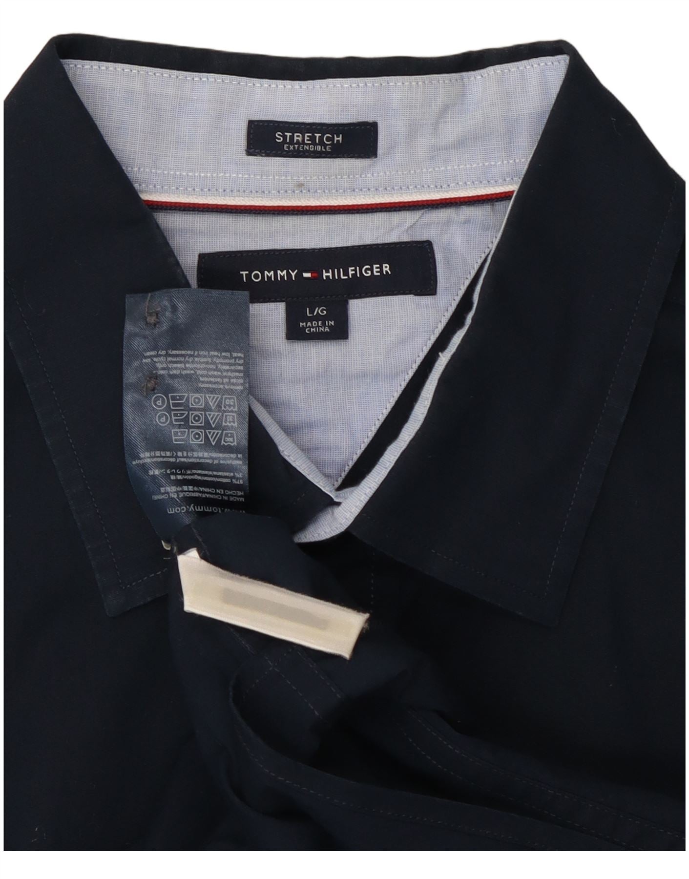 TOMMY HILFIGER Camisa elástica para hombre Grande Azul marino Algodón