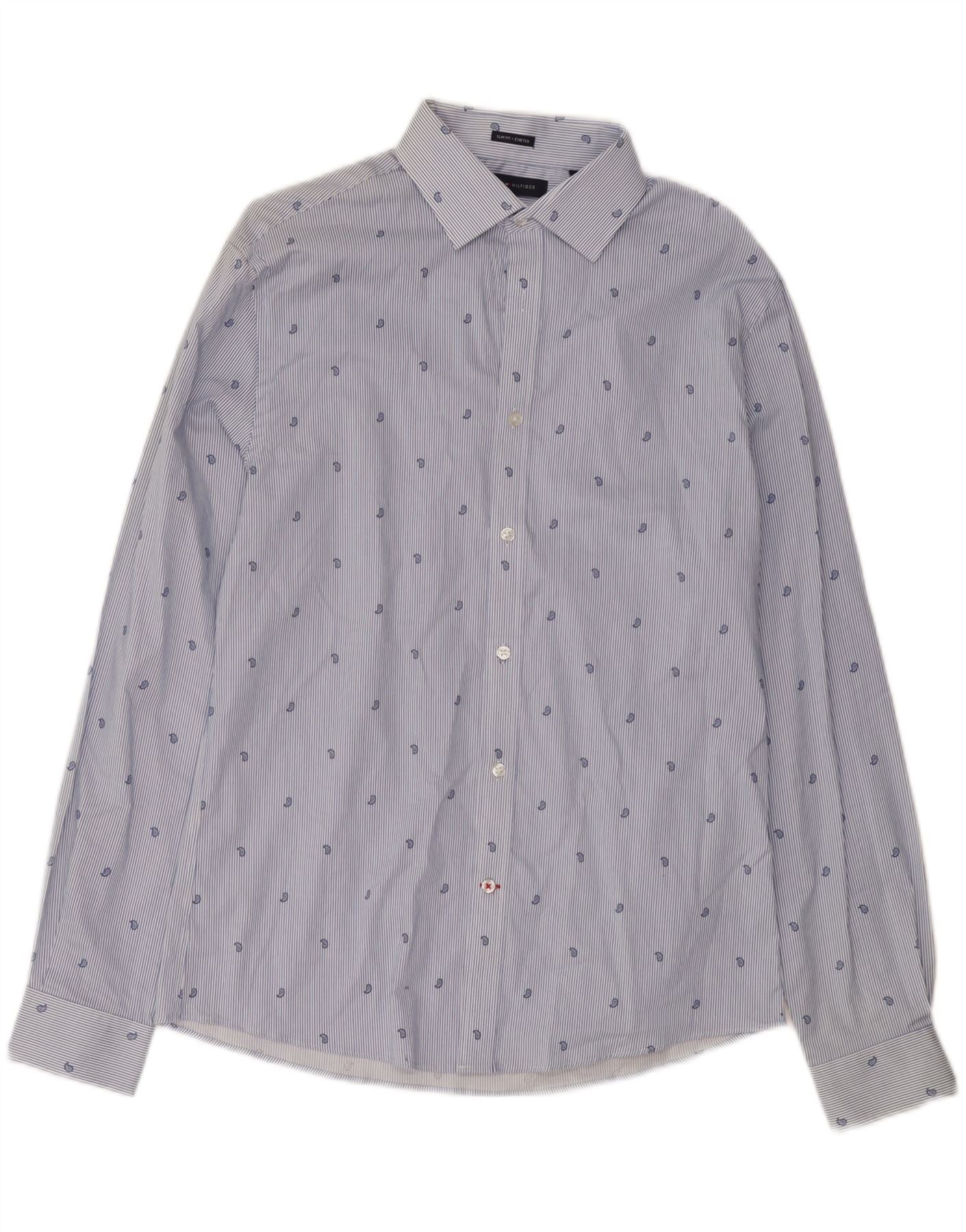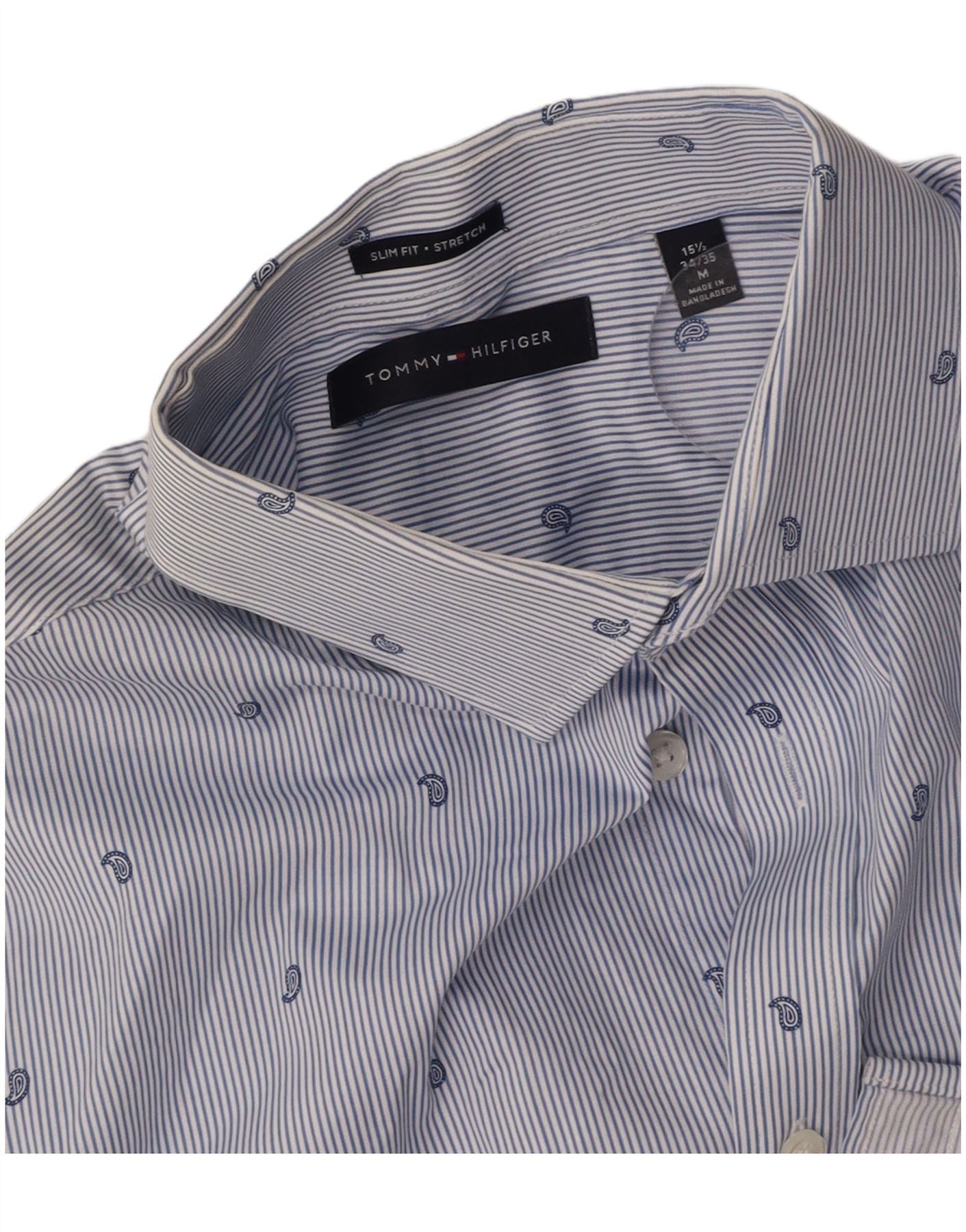 TOMMY HILFIGER Camisa elástica para hombre Talla 15 1/2 Raya mediana azul
