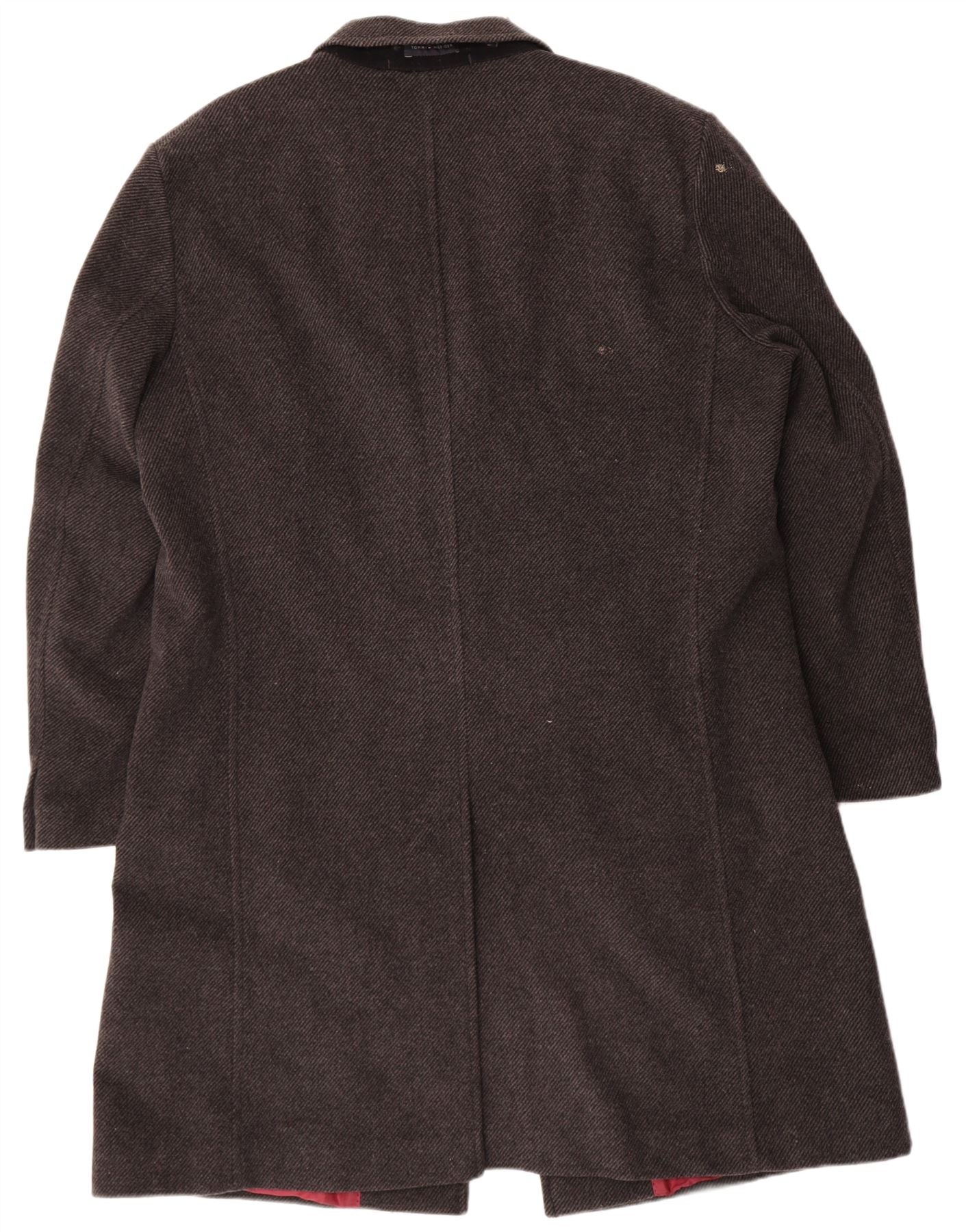 TOMMY HILFIGER Mens Tailored Overcoat UK 40 Large Grey Herringbone Wool