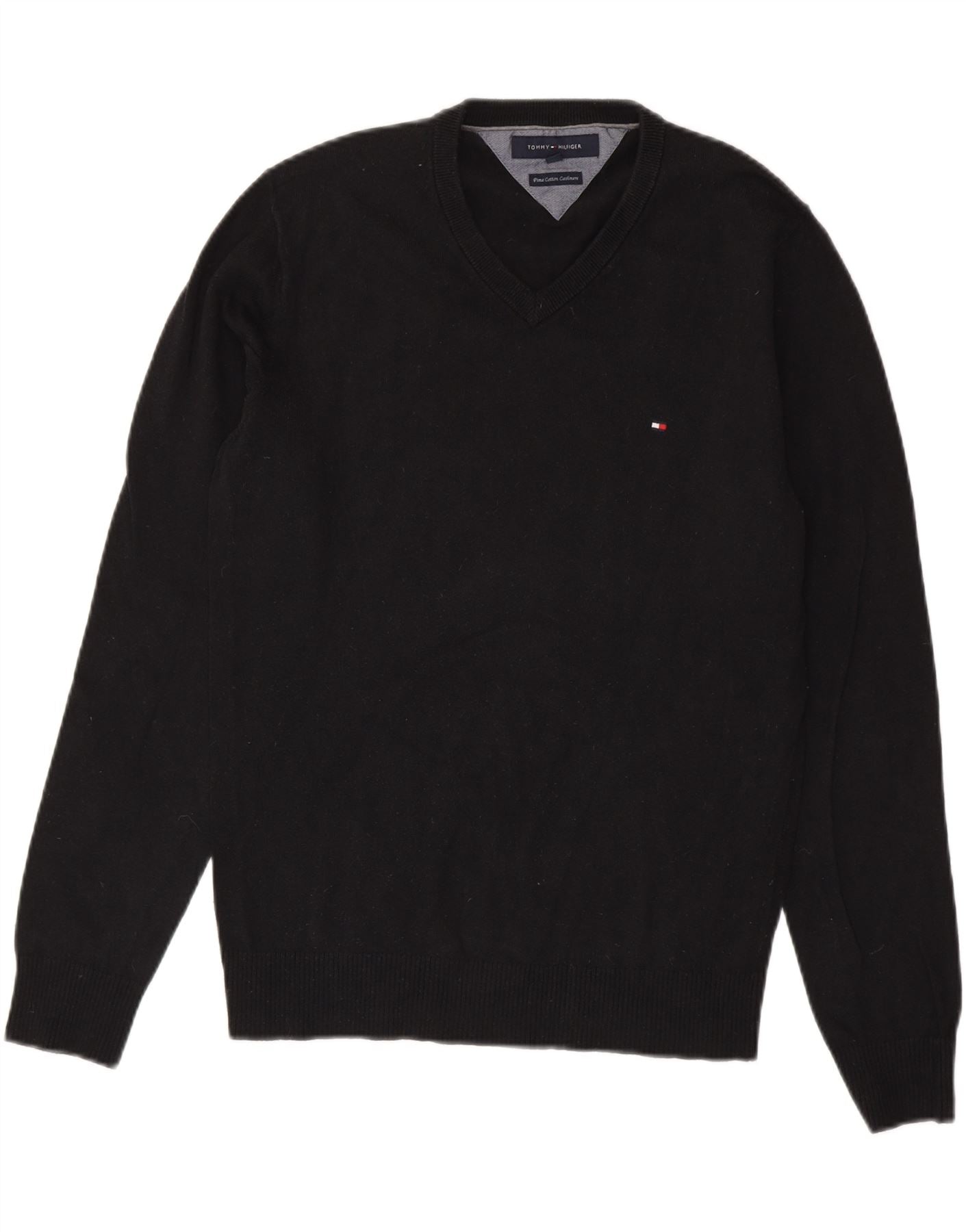 TOMMY HILFIGER Jersey con cuello en V para hombre Small Black Cotton