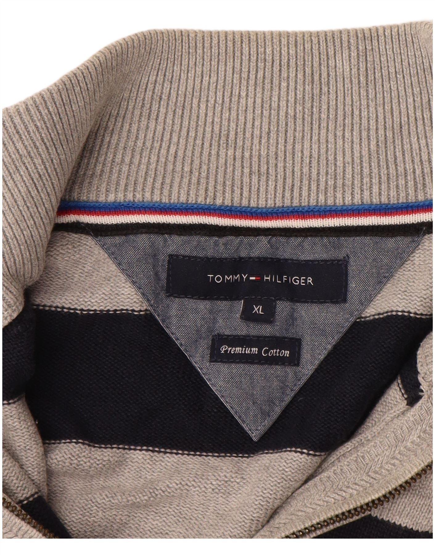 TOMMY HILFIGER Jersey con cuello y cremallera para hombre XL Algodón a rayas negro