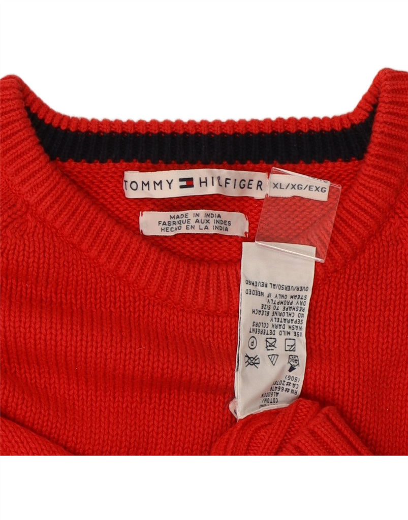 TOMMY HILFIGER Womens 3/4 Sleeve Crew Neck Jumper Sweater UK 18 XL Red