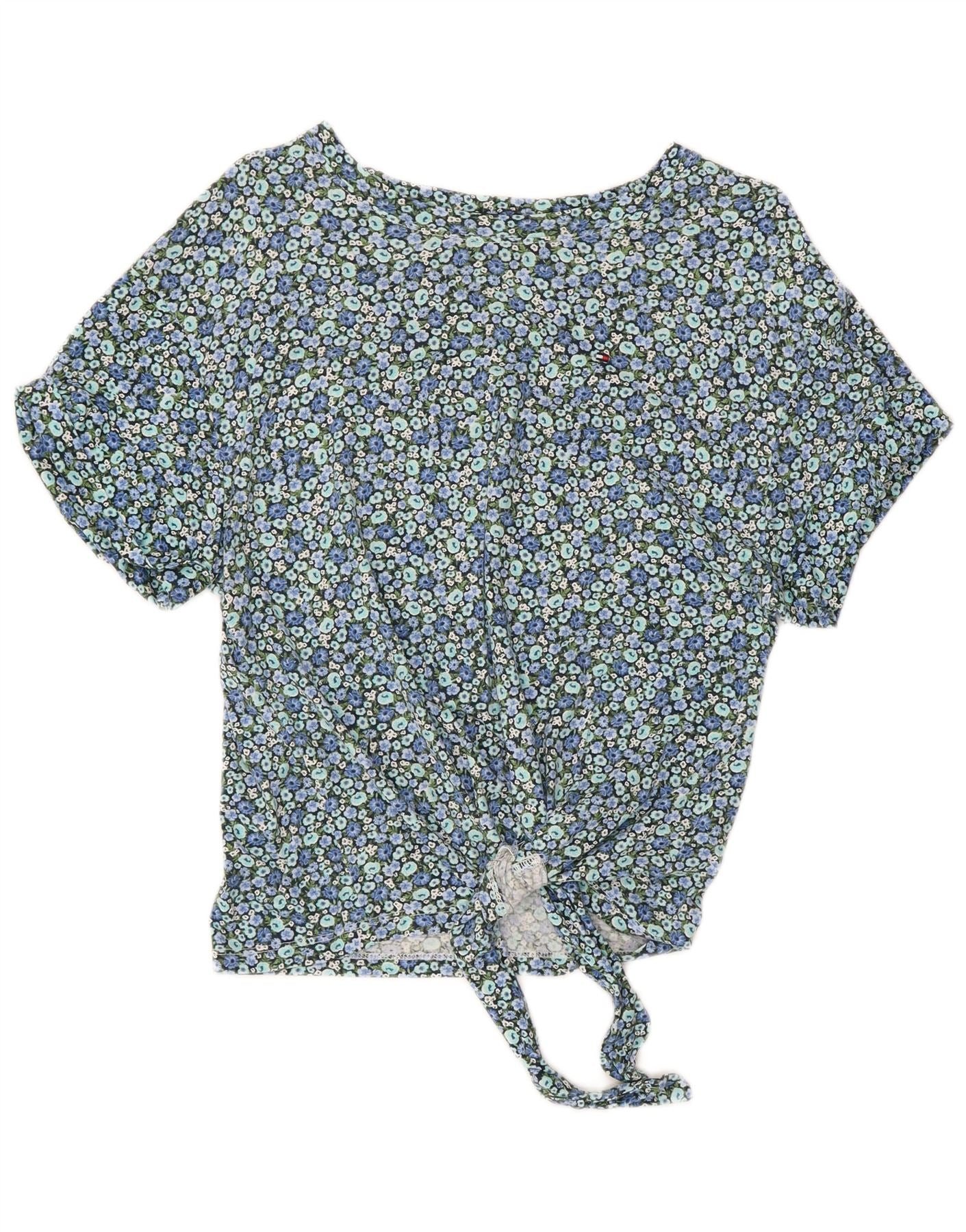TOMMY HILFIGER Blusa corta para mujer UK 10 Small Blue Floral Cotton
