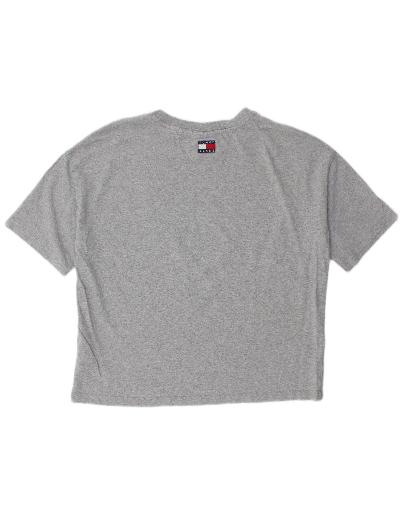 TOMMY HILFIGER Womens Crop Oversized Graphic T-Shirt Top UK 6 XS Grey