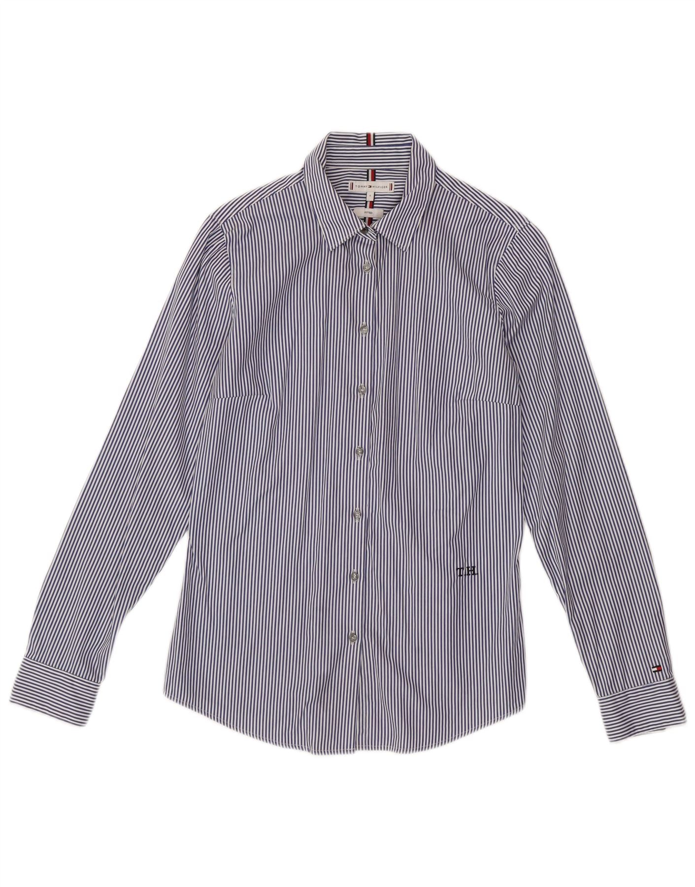 TOMMY HILFIGER Camisa ajustada para mujer US 6 Mediana azul a rayas