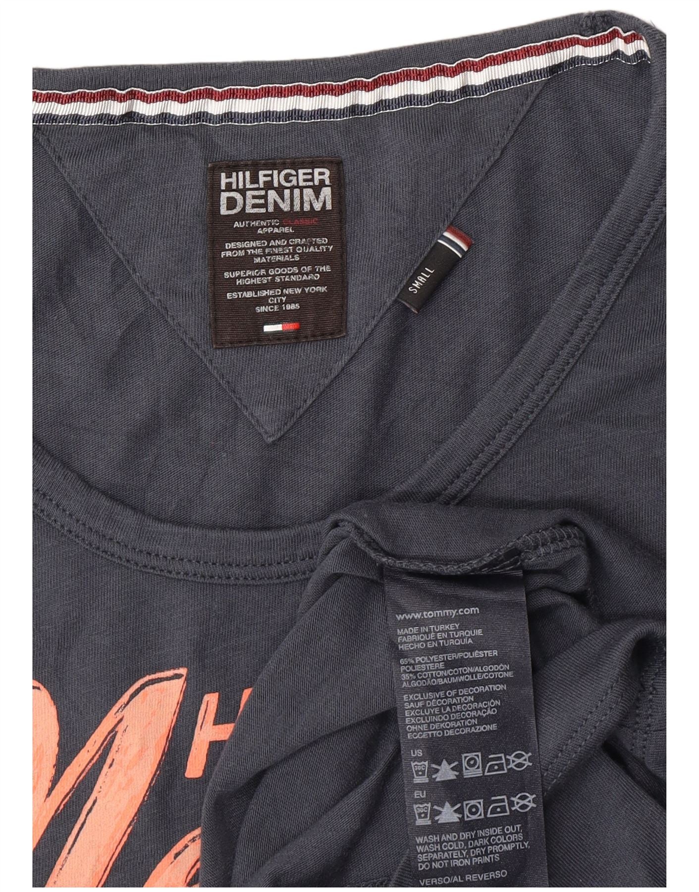 TOMMY HILFIGER Camiseta gráfica para mujer Top UK 10 Small Azul marino Poliéster