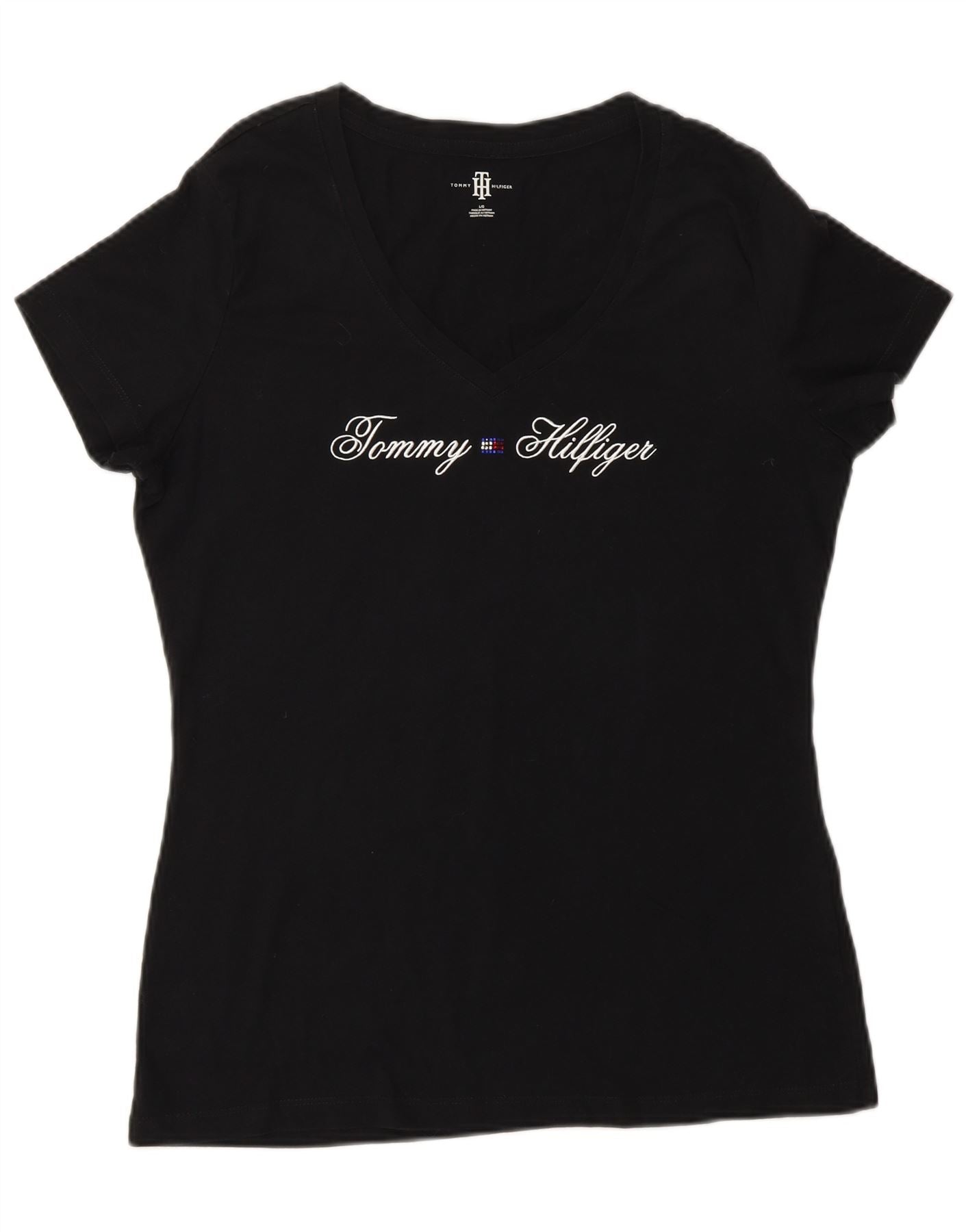 TOMMY HILFIGER Camiseta gráfica para mujer Top UK 44 Grande Algodón negro