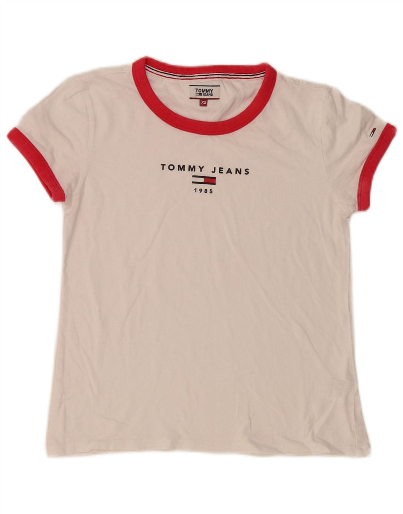 TOMMY HILFIGER Womens Graphic T-Shirt Top UK 6 XS White Cotton