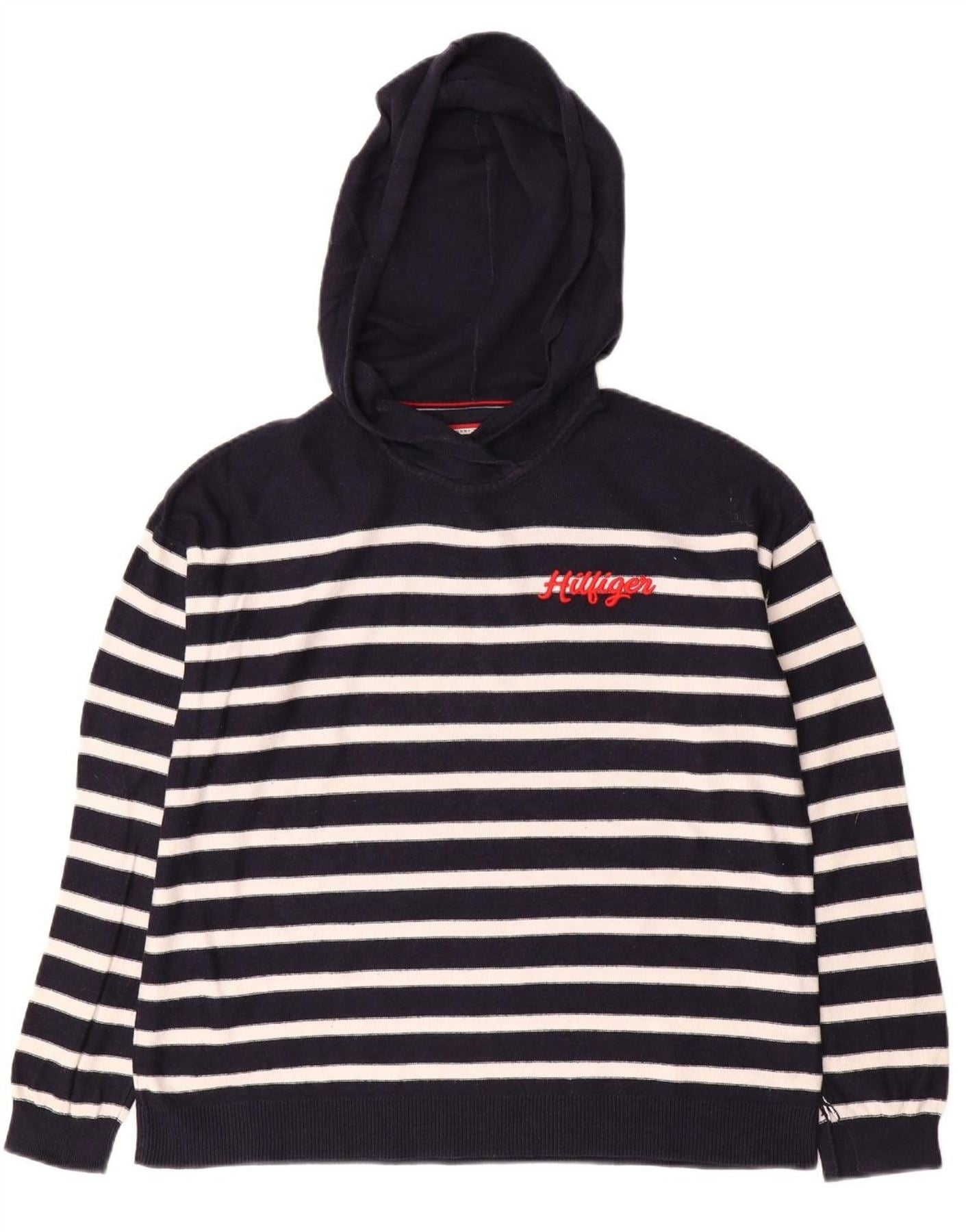 TOMMY HILFIGER Suéter con capucha para mujer UK 40 Mediano Azul marino Rayas