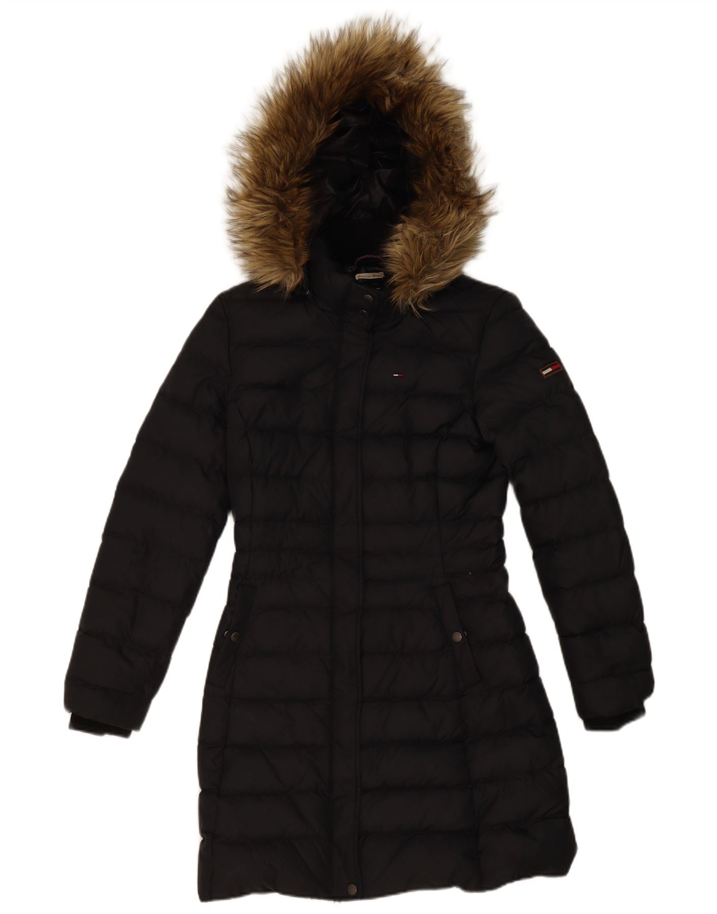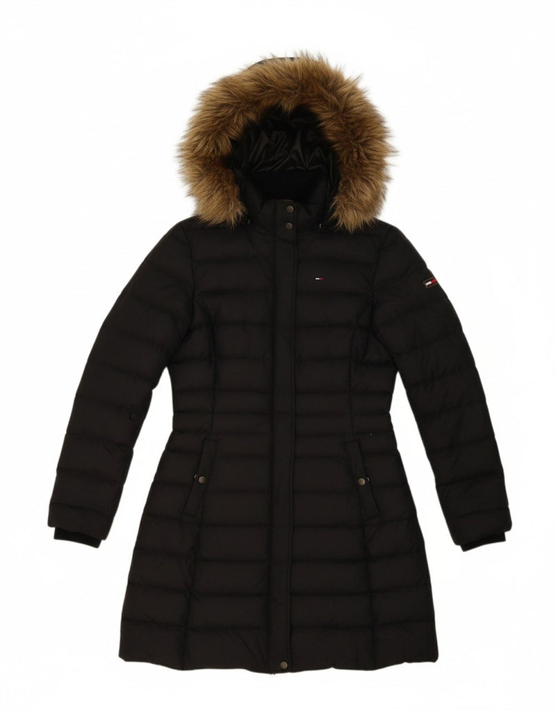TOMMY HILFIGER Womens Hooded Padded Coat UK 10 Small Black Polyester