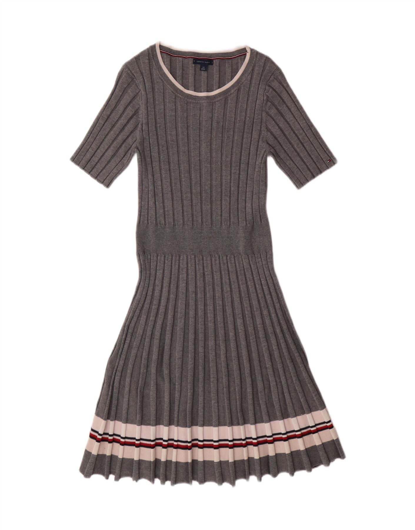 TOMMY HILFIGER Vestido tipo jersey para mujer UK 44 Viscosa a rayas gris grande