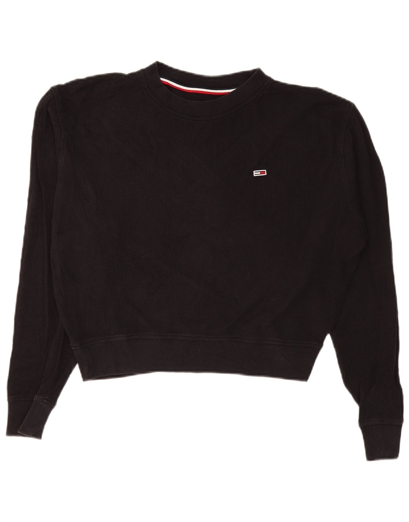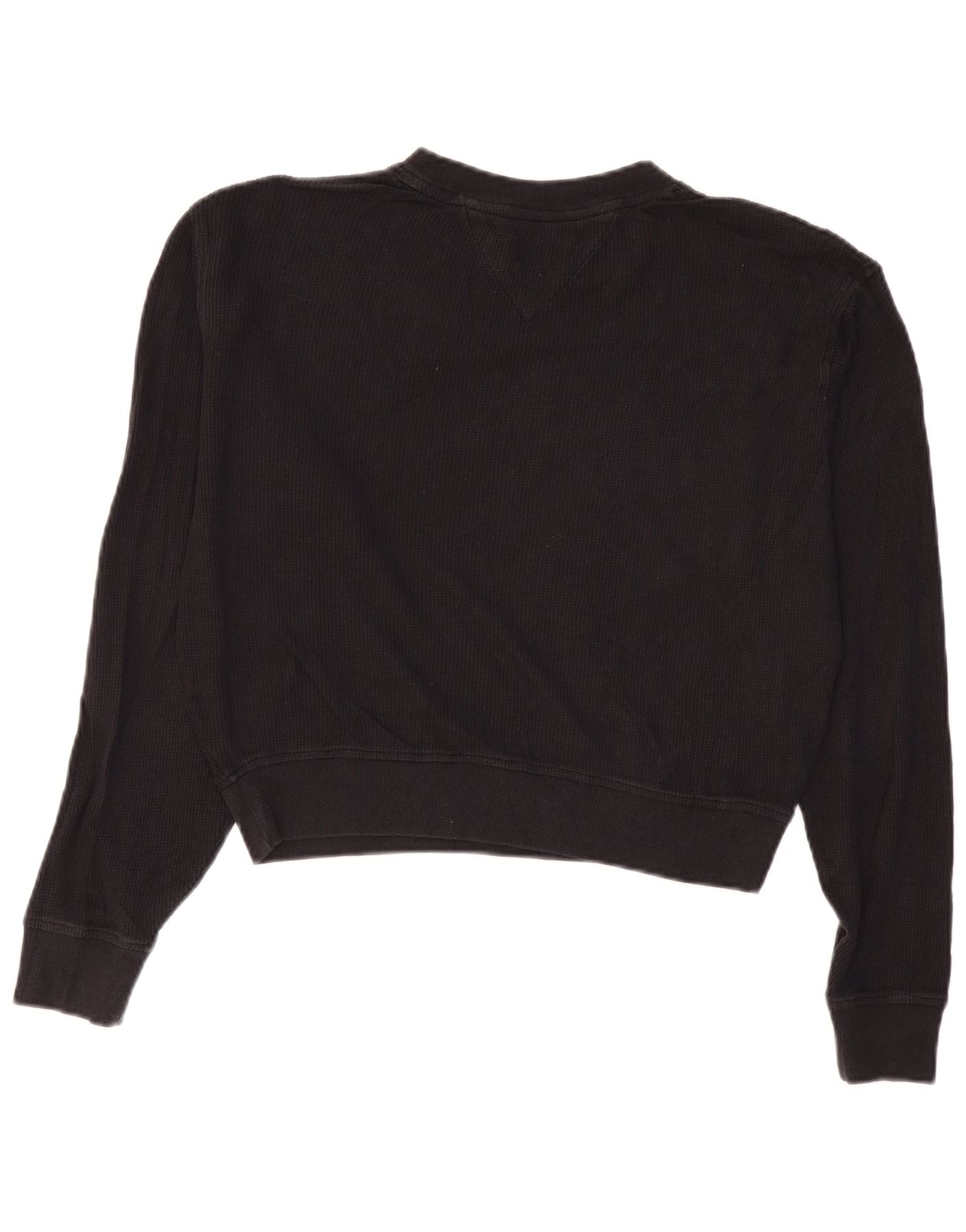 TOMMY HILFIGER Top corto extragrande de manga larga para mujer UK 10 Small Black