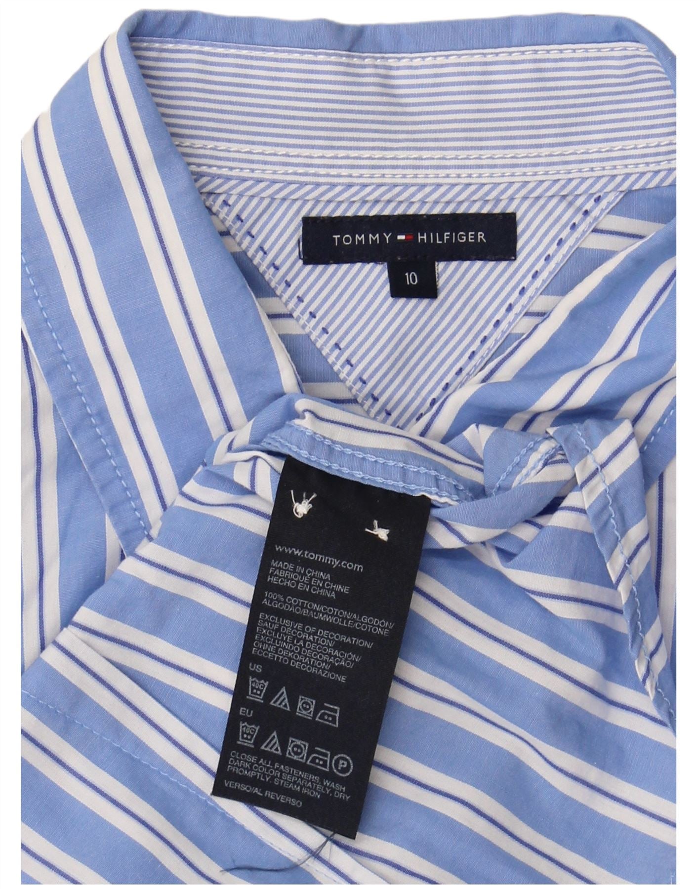 TOMMY HILFIGER Camisa delantera con volantes para mujer US 10 Algodón a rayas azules grandes