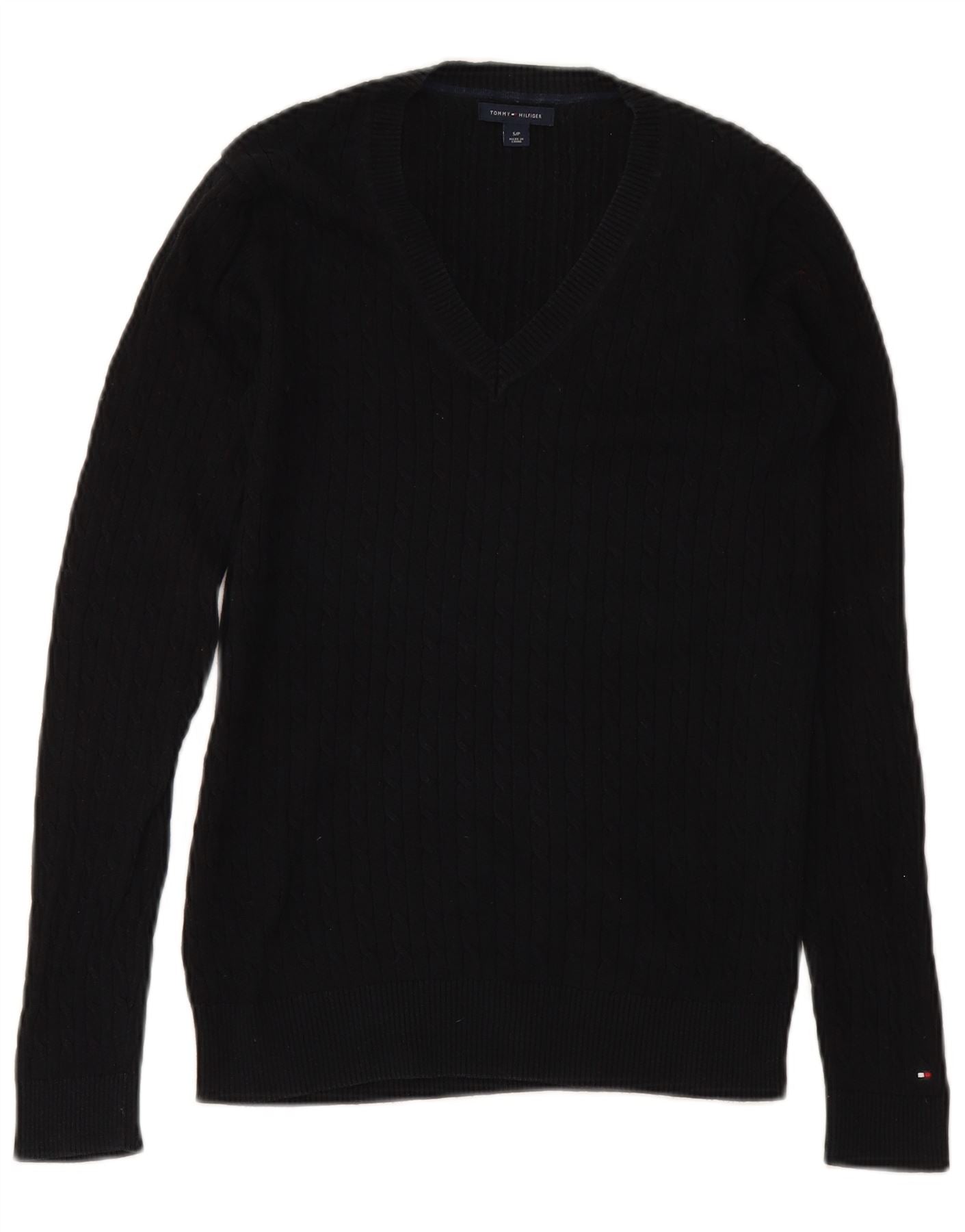 TOMMY HILFIGER Suéter tipo jersey con cuello en V para mujer UK 10 Small Black