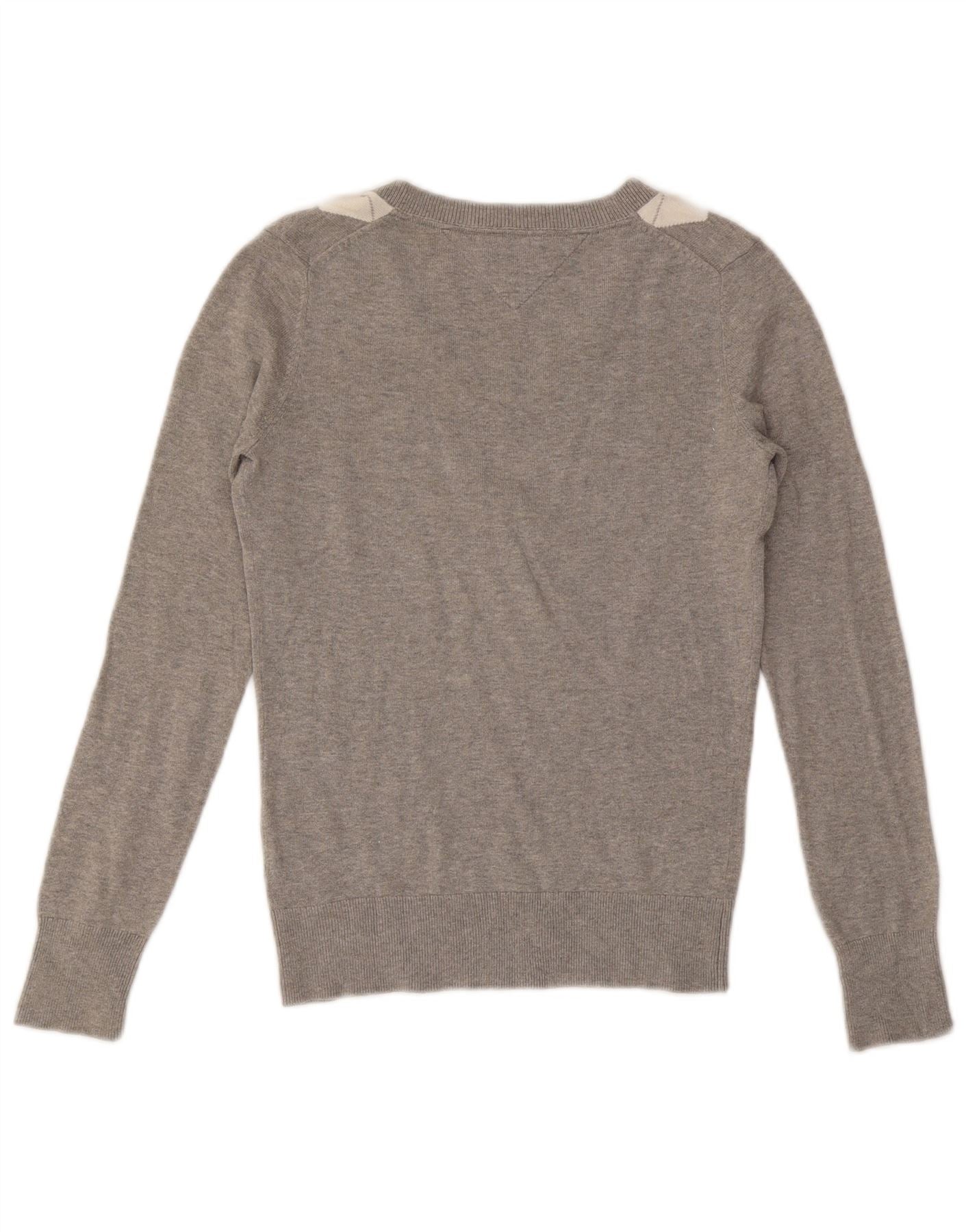 TOMMY HILFIGER Womens V-Neck Jumper Sweater UK 10 Small Grey
