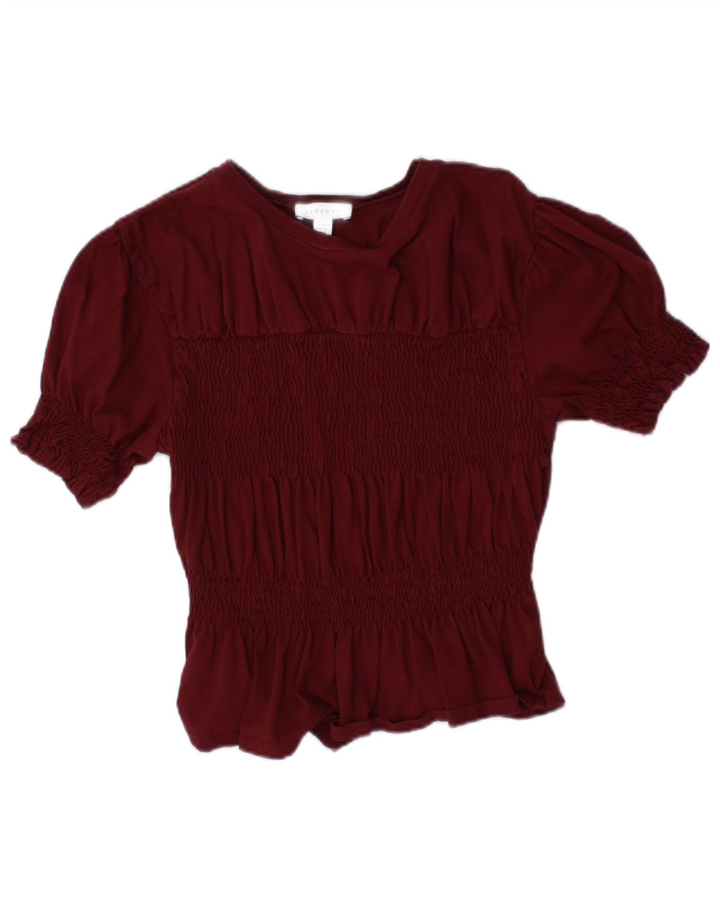 TOPSHOP Blusa corta para mujer UK 10 Small Borgoña Algodón