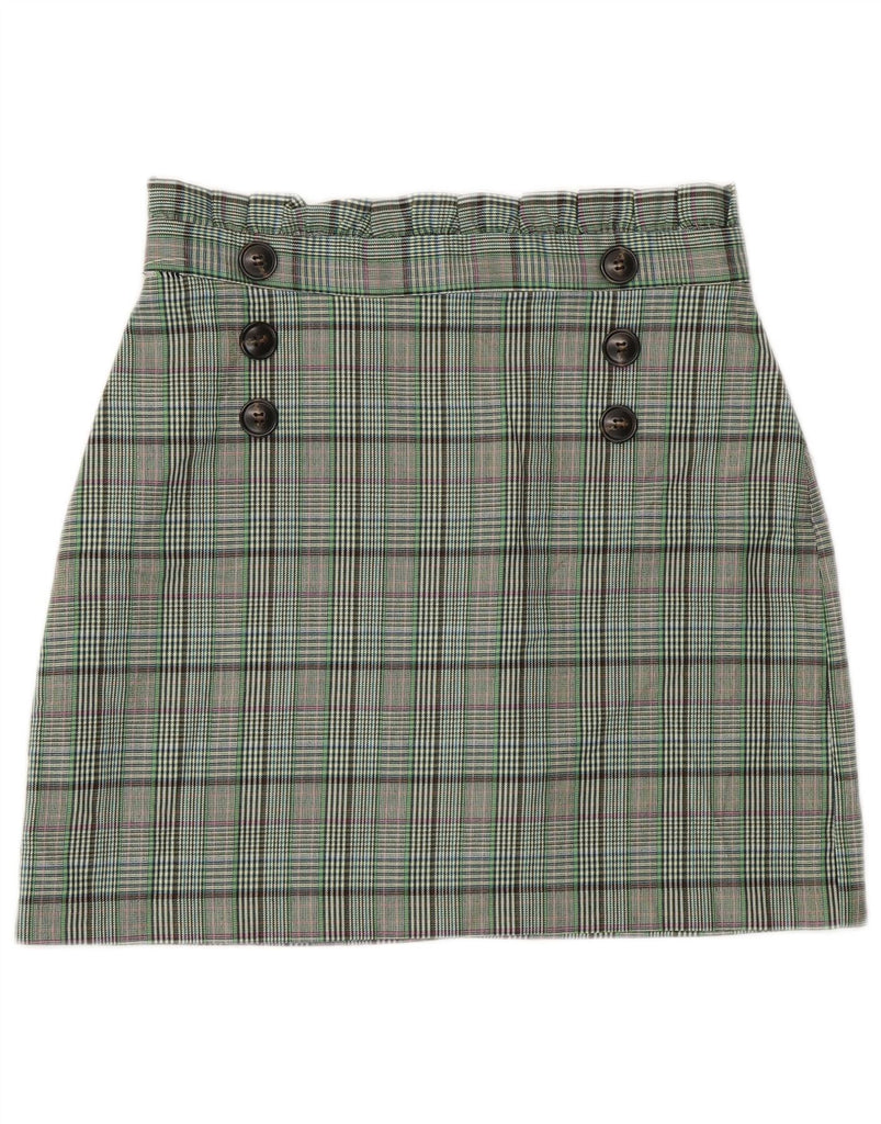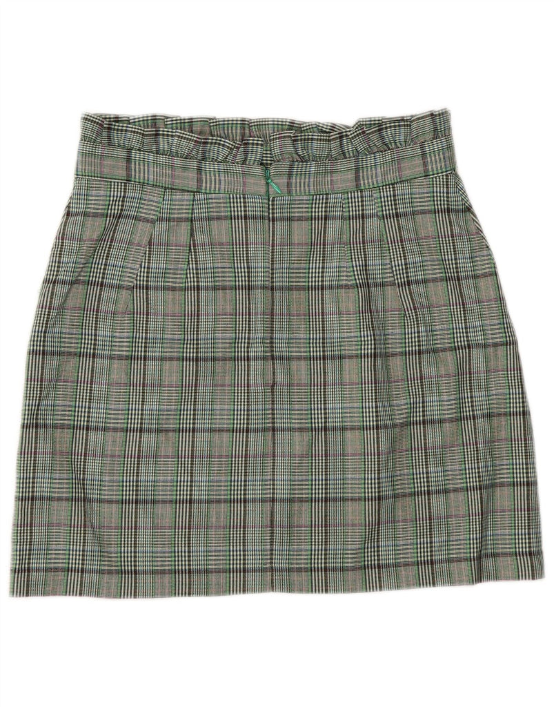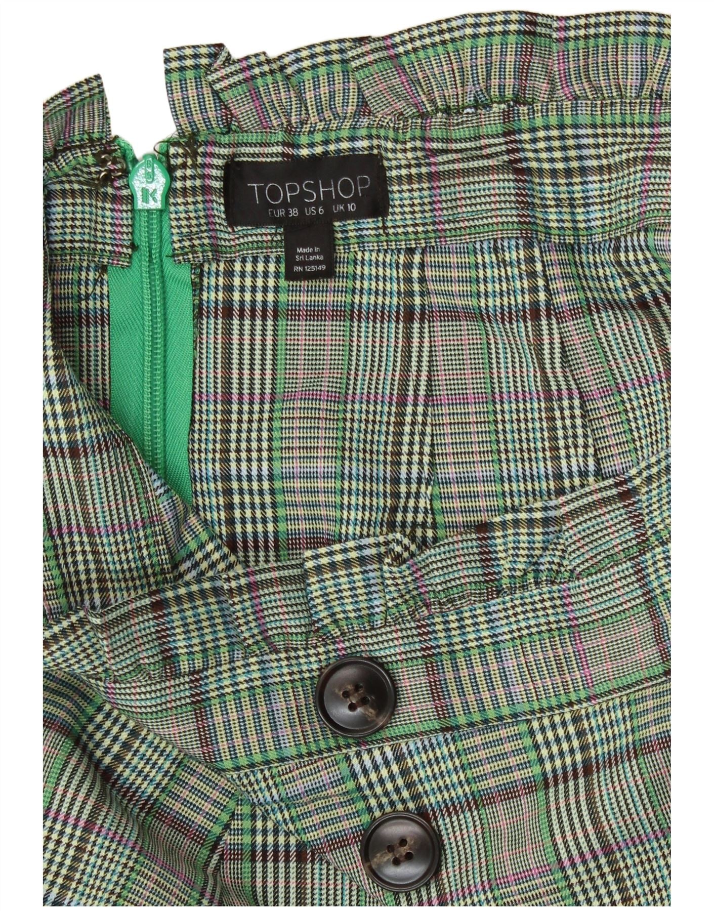 TOPSHOP Womens High Waist Mini Skirt UK 10 Small W26 Green Houndstooth