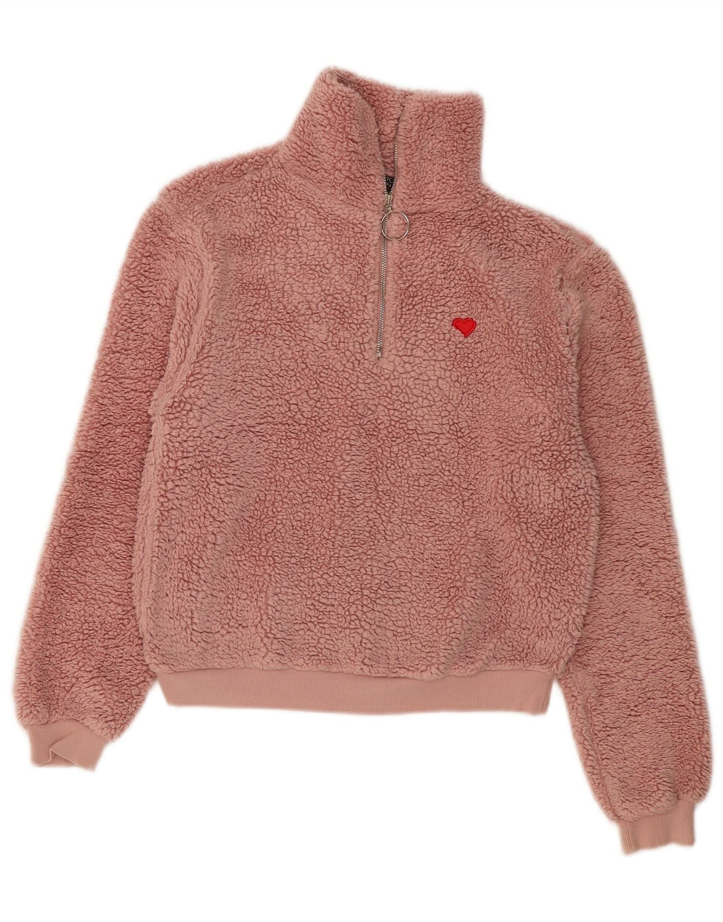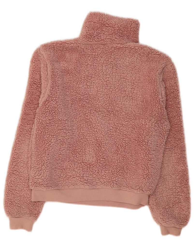 TOPSHOP Womens Loose Fit Zip Neck Fleece Jumper UK 8 Small Pink Polyester