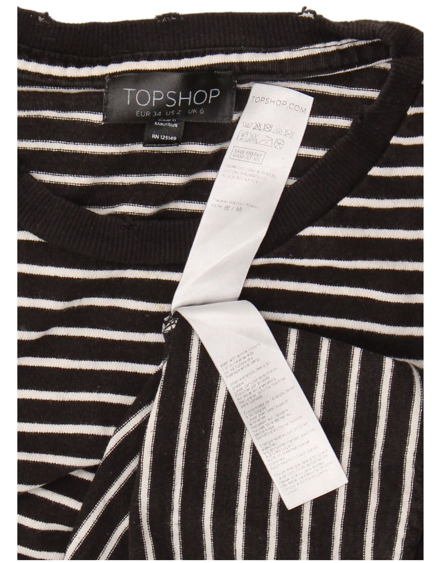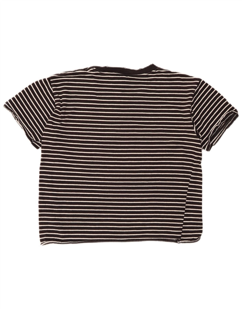 TOPSHOP Womens Oversized Crop T-Shirt Top UK 6 XS Black Striped Cotton