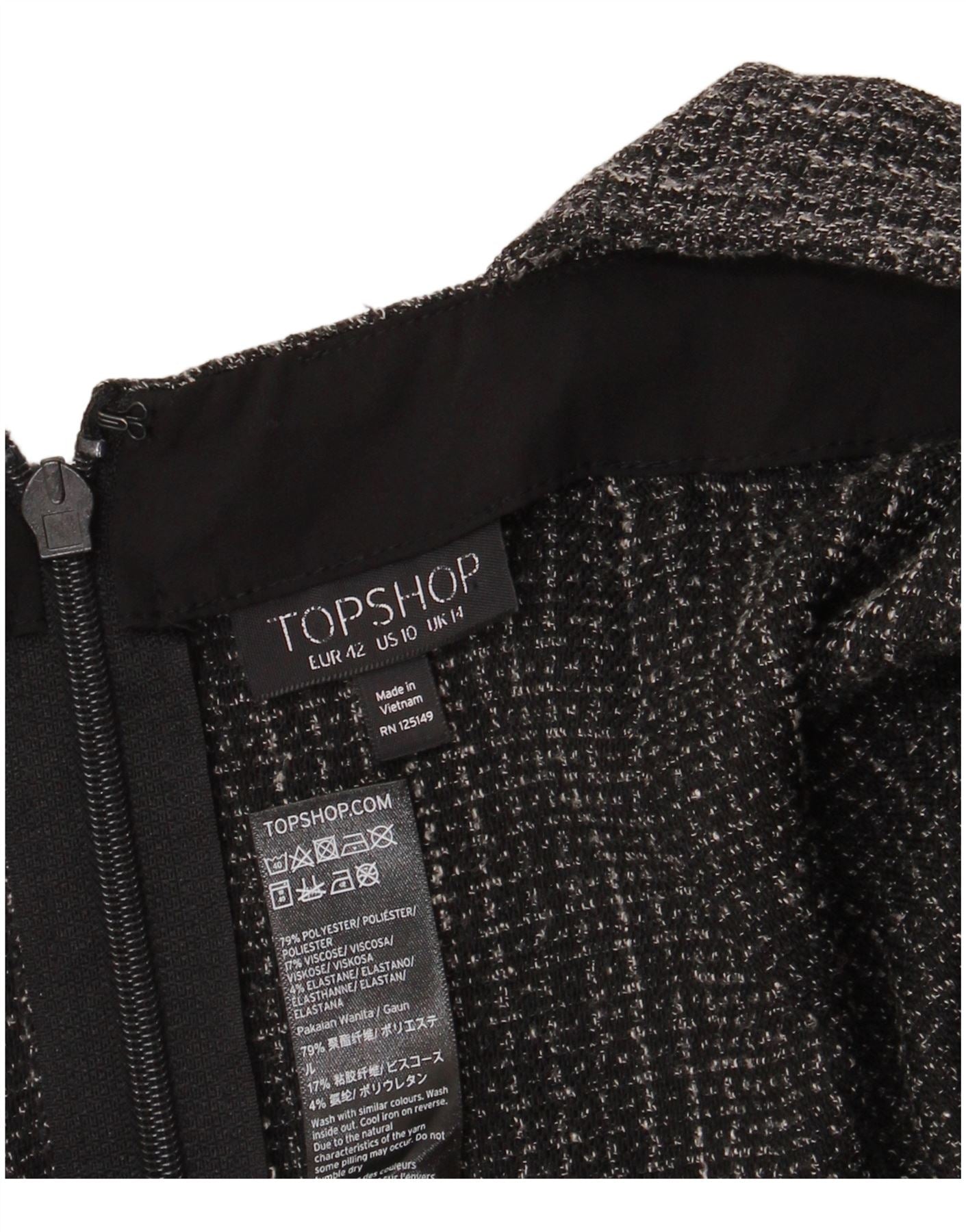 - Descripción de IA: Este vestido estilo delantal para mujer de Topshop está confeccionado con una mezcla de tela negra con una sutil textura de punto. El material ofrece un estiramiento cómodo. Presenta un escote cuadrado clásico y un diseño sin mangas. El corte regular garantiza una silueta cómoda. Un discreto cierre de cremallera asegura la espalda. El tejido texturizado proporciona profundidad visual al tono oscuro, lo que lo convierte en un elemento básico de vestuario versátil.