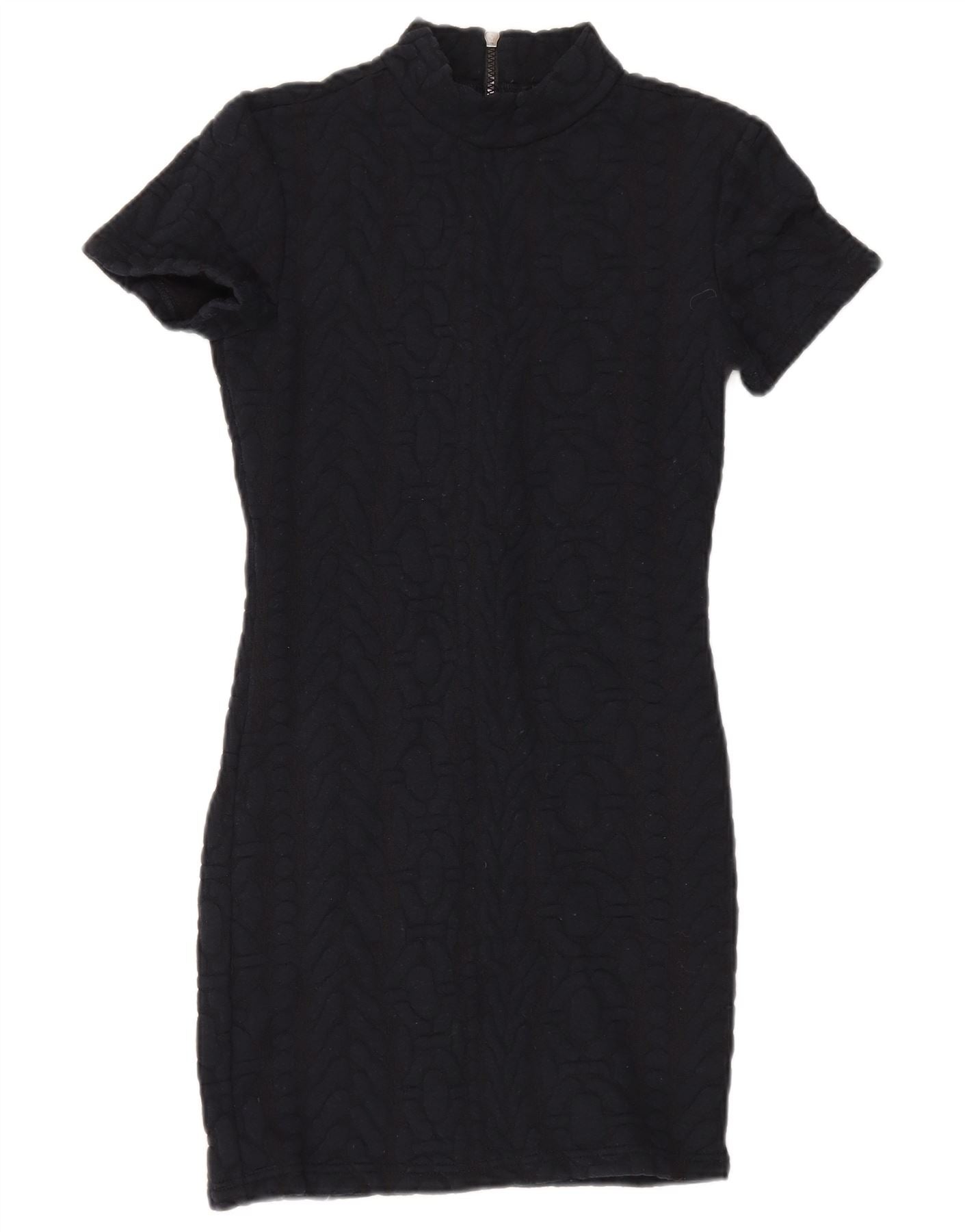 - Descripción de IA: Este vestido ajustado para mujer de Topshop está confeccionado con una mezcla de tela negra y presenta un sutil patrón geométrico. Presenta un elegante cuello alto con un práctico cierre de cremallera en la parte delantera. Las mangas cortas enmarcan perfectamente los hombros. La silueta ajustada se ciñe a la figura, creando un perfil elegante y moderno. Este vestido ofrece un estilo contemporáneo con un toque refinado.
