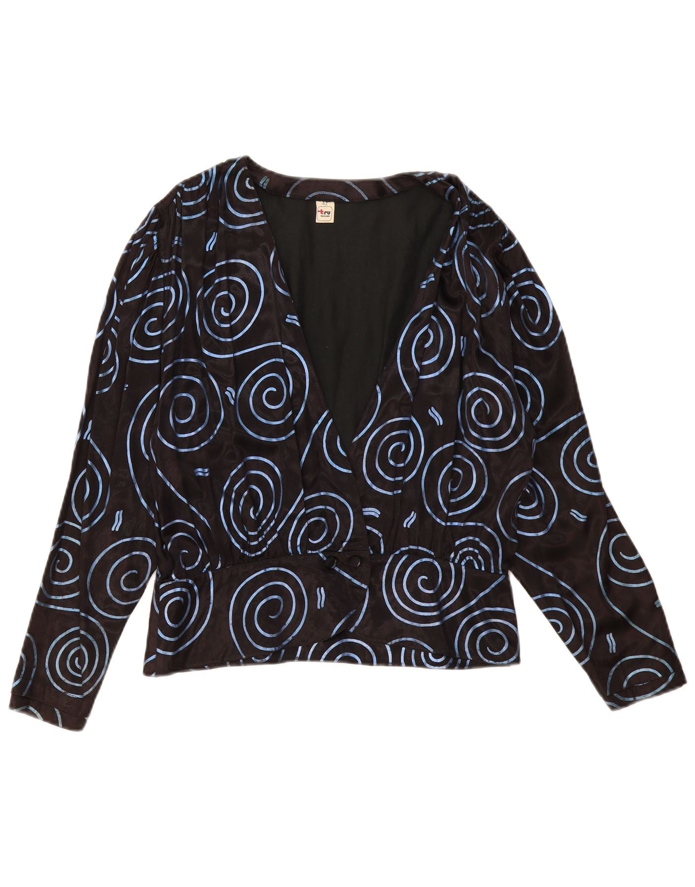 TRU Blusa camisera con patrón abstracto para mujer IT 42 Medium Black