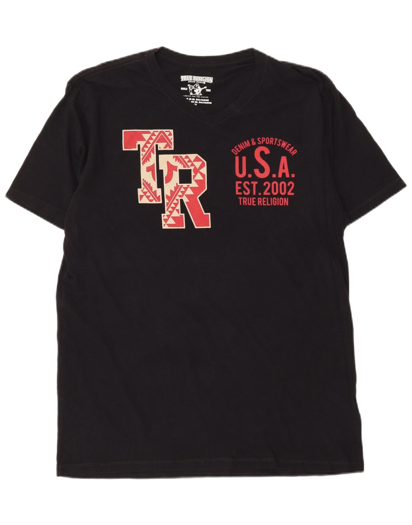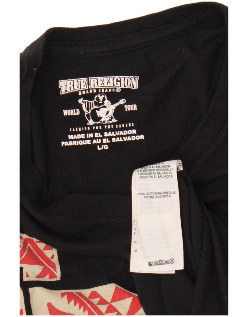 TRUE RELIGION Mens Graphic T-Shirt Top Large Black Cotton