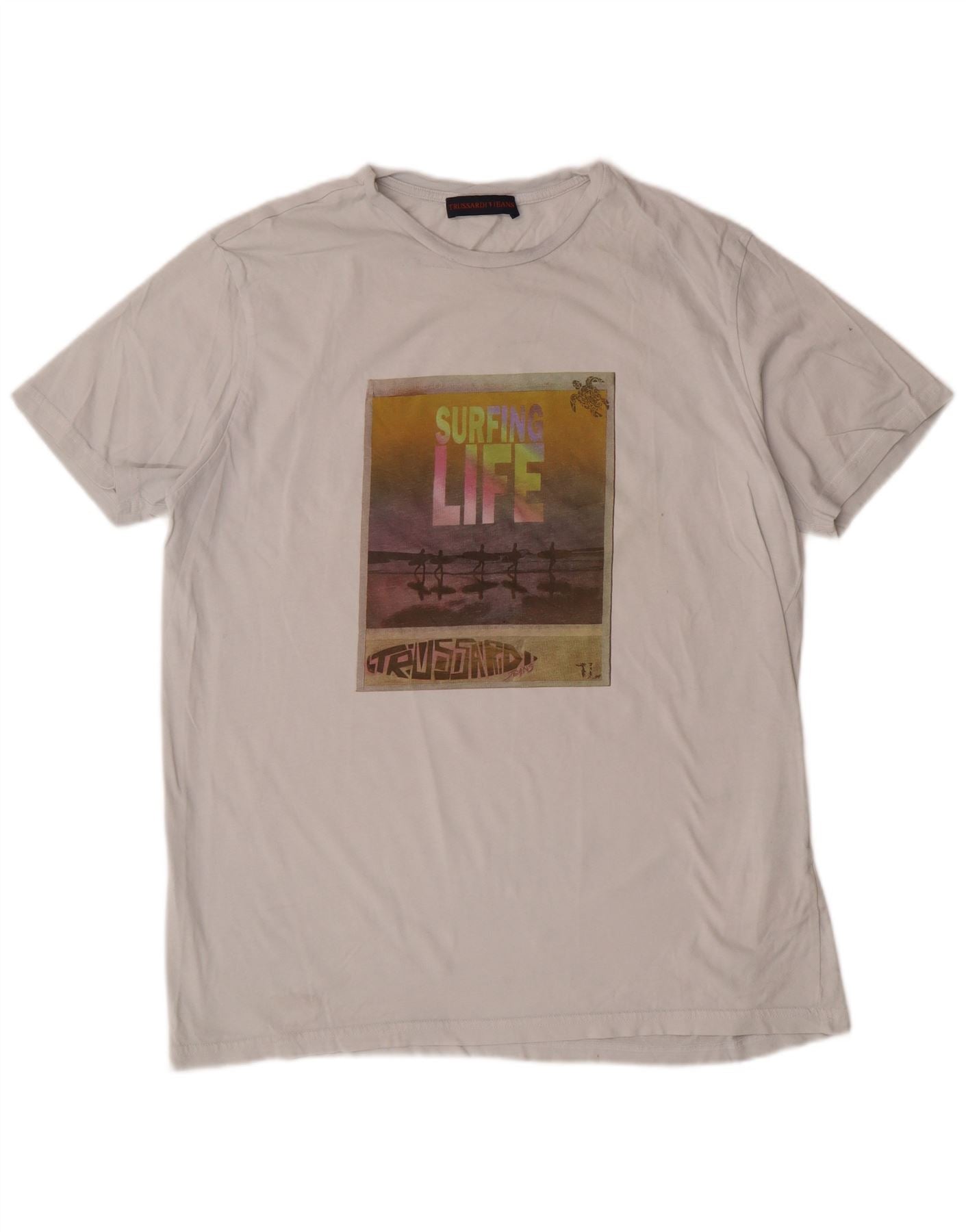 TRUSSARDI JEANS Camiseta gráfica para hombre Top 3XL Algodón blanco