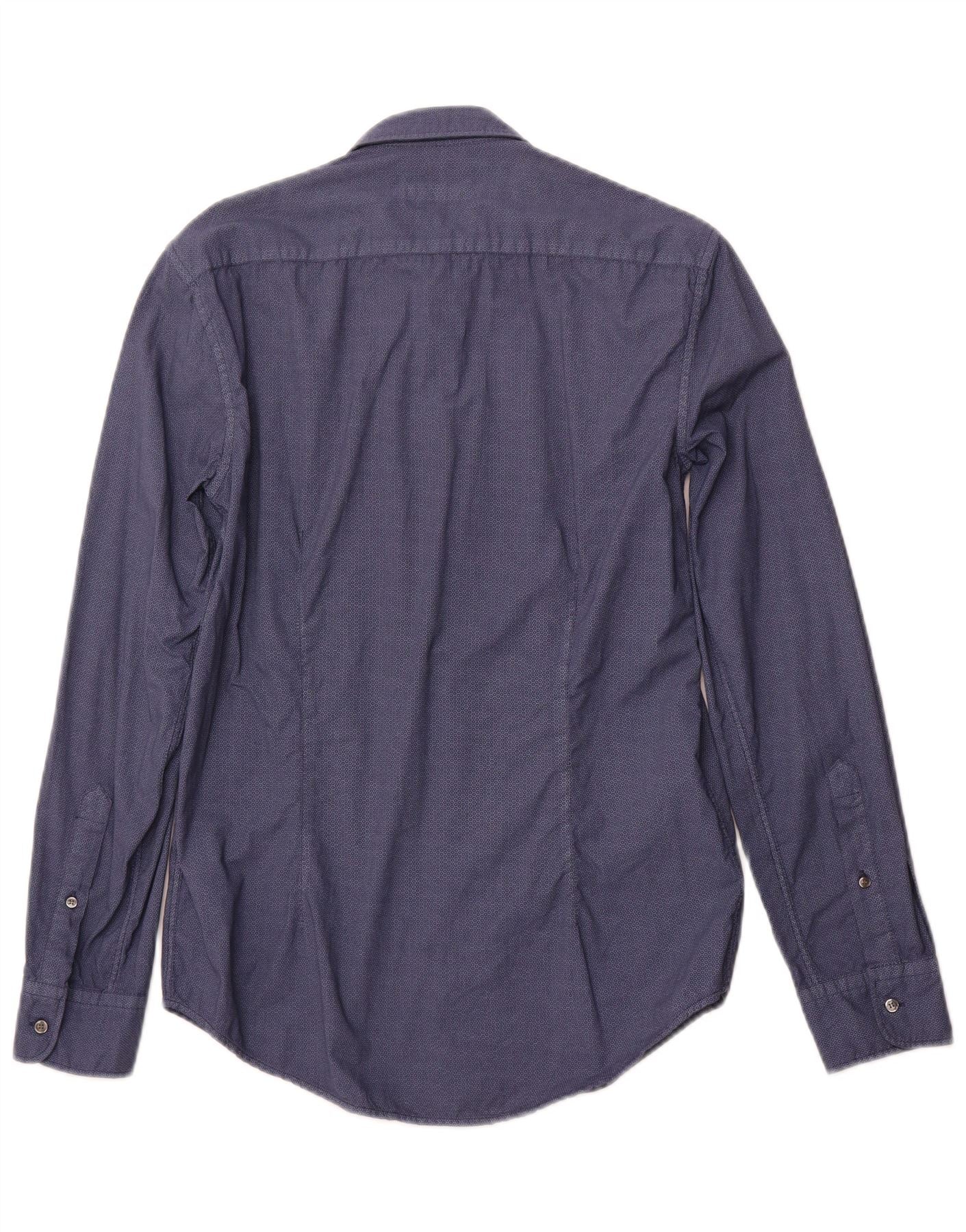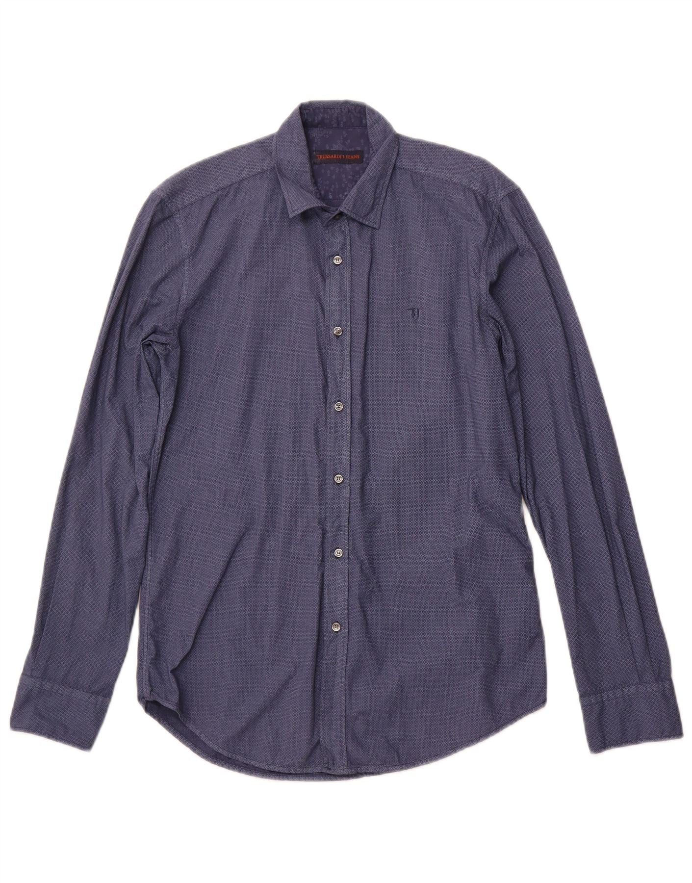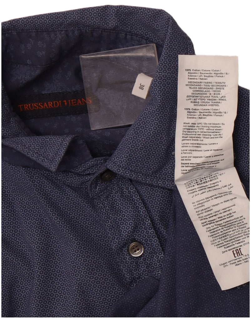 TRUSSARDI JEANS Camisa Hombre Talla 38 Mediana Azul Marino Algodón Geométrico