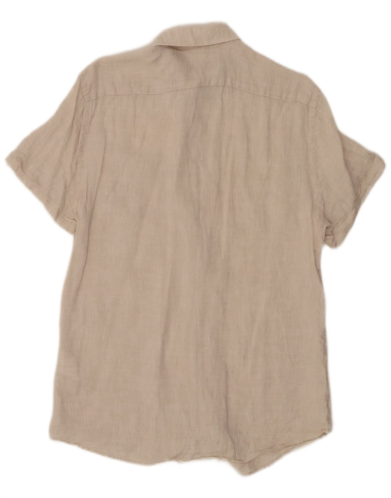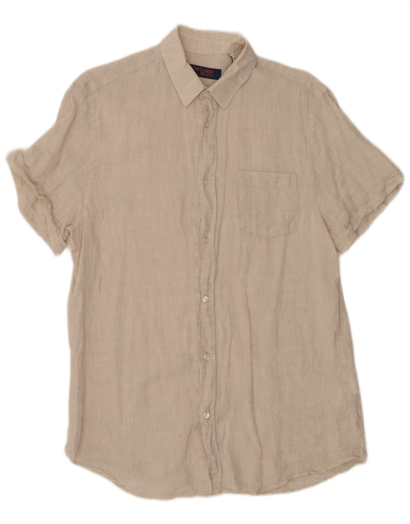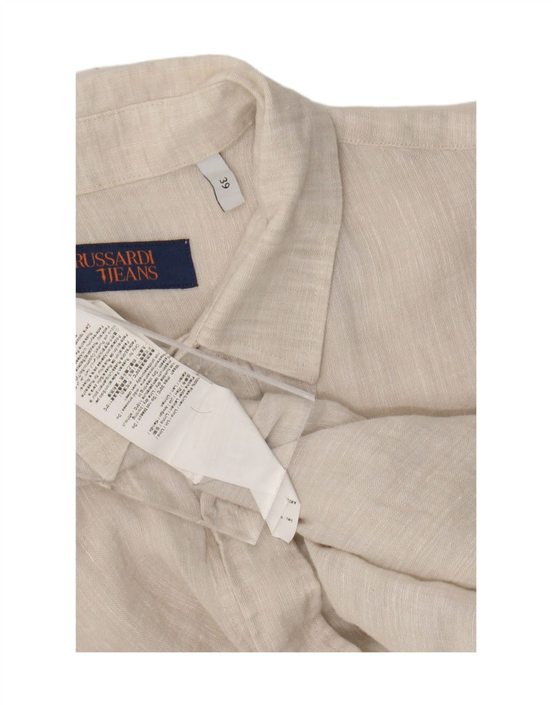 TRUSSARDI JEANS Camisa Manga Corta Hombre Talla 39 Mediano Beige Lino