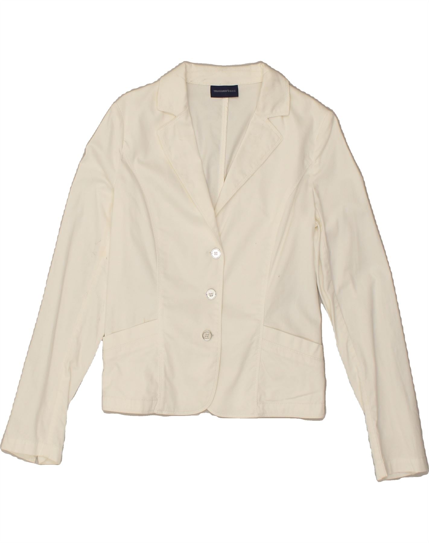 TRUSSARDI JEANS Womens 3 Button Blazer Jacket IT 44 Medium White Cotton