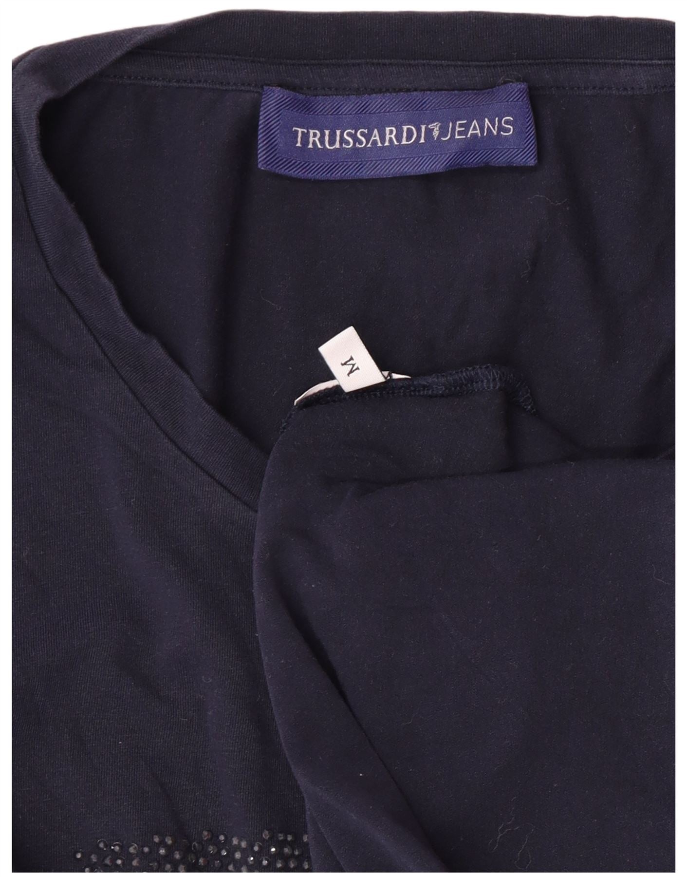 TRUSSARDI JEANS Camiseta gráfica para mujer Top UK 40 Medium Azul marino