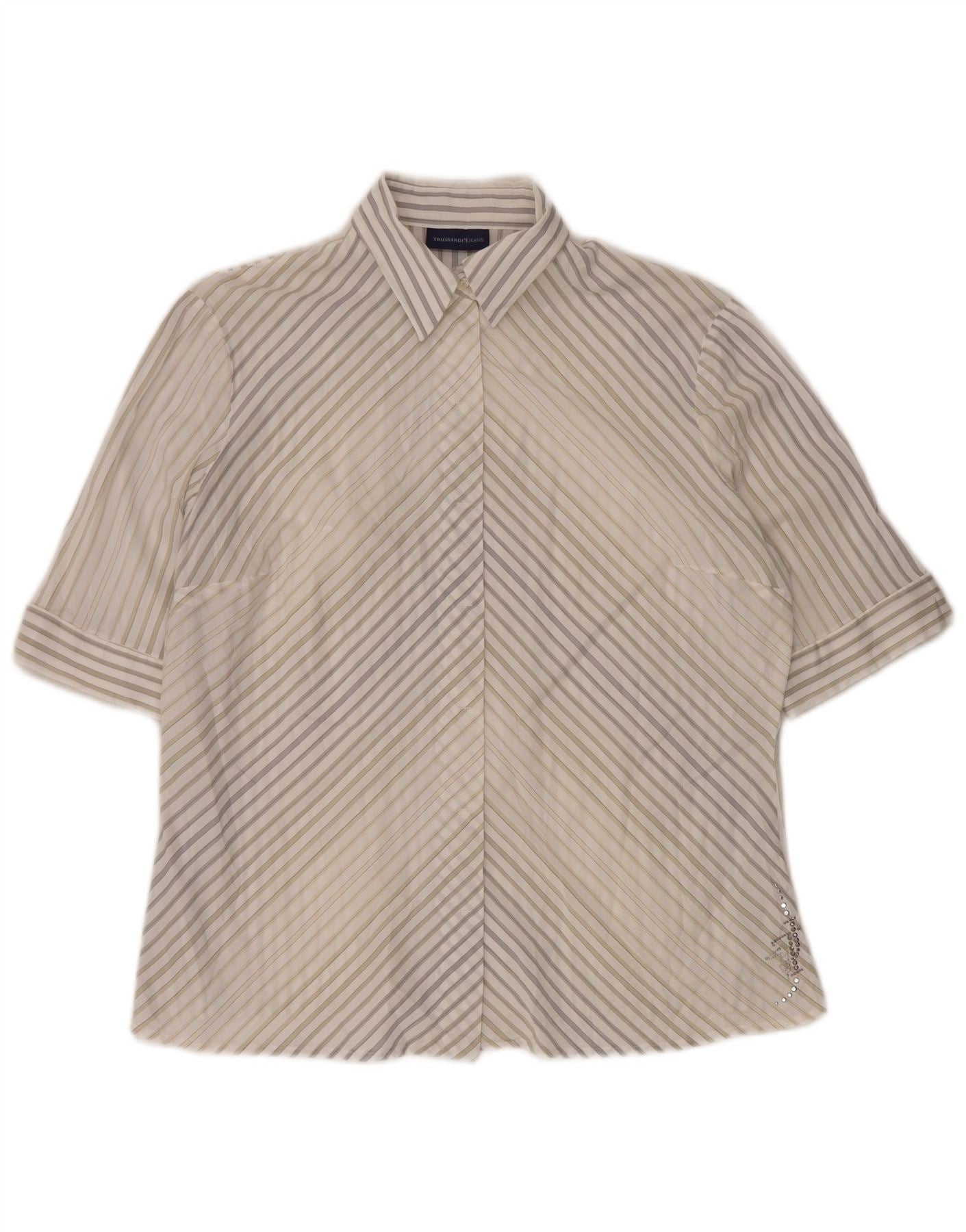TRUSSARDI JEANS Blusa de manga corta para mujer UK 22 3XL Blanco a rayas