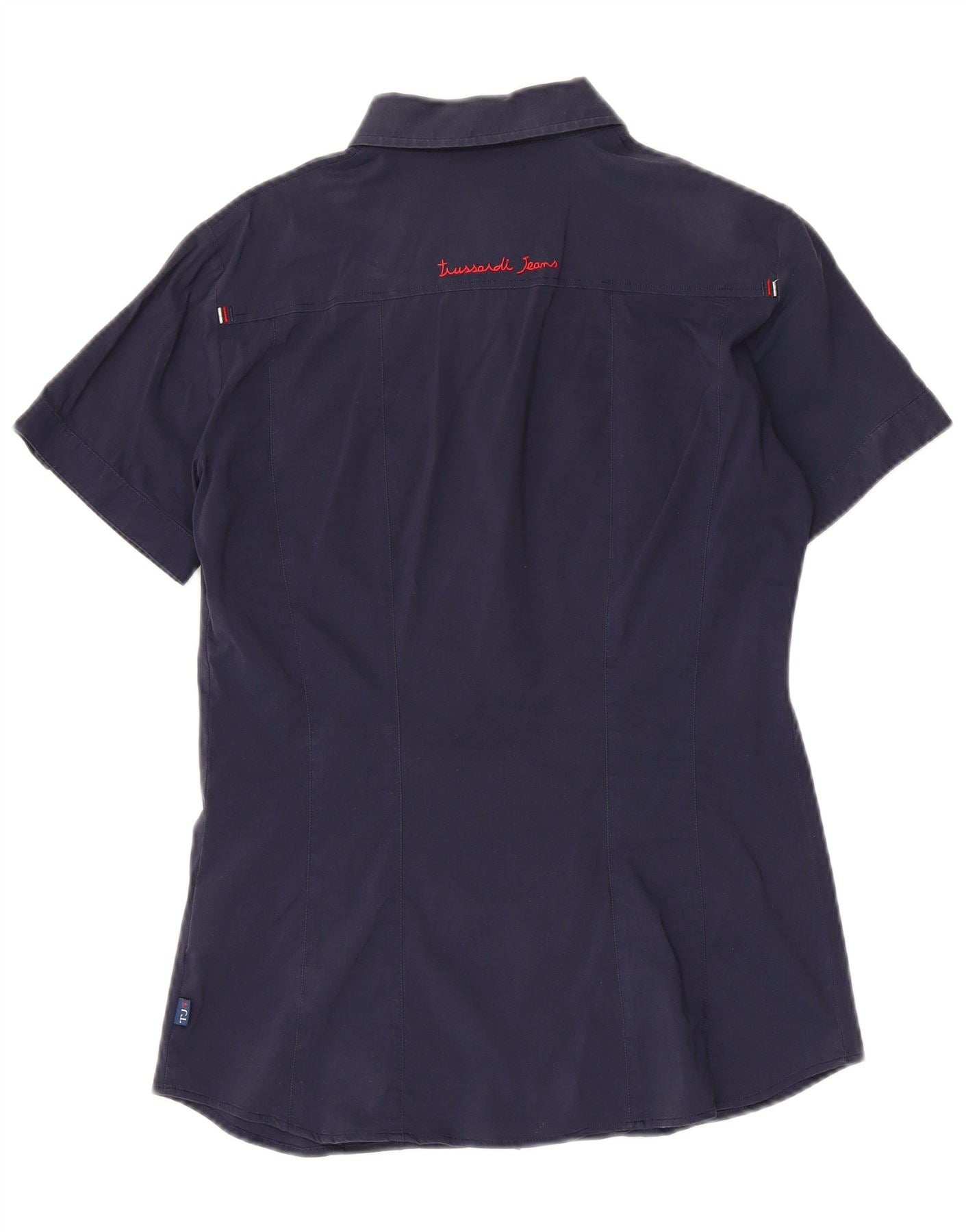 TRUSSARDI JEANS Camisa de manga corta para mujer UK 40 Medium Azul marino Algodón