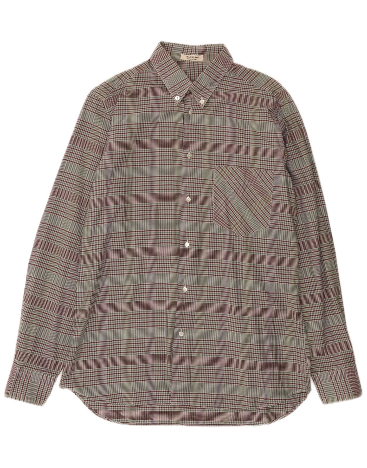 TRUSSARDI Camisa Hombre Talla 40 15 3/4 Mediana Algodón Cuadros Multicolor